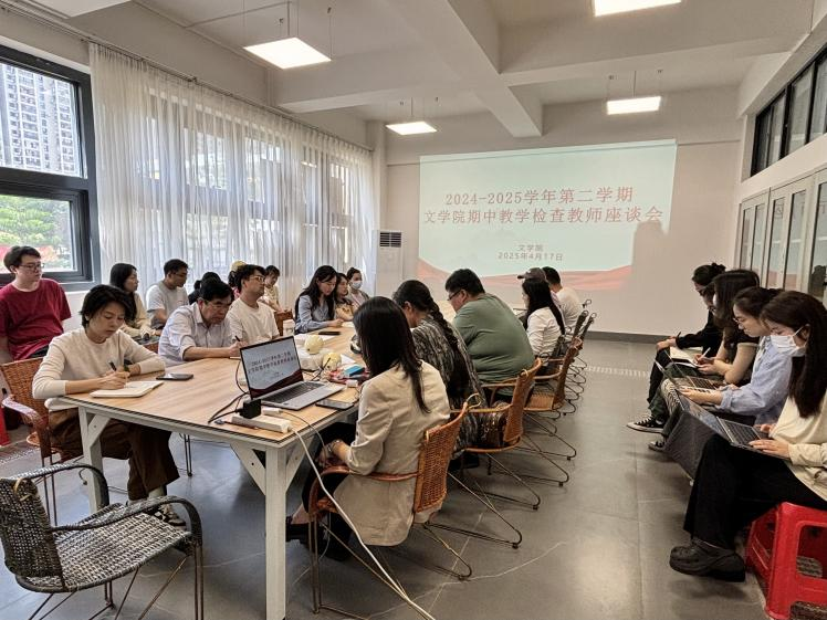 为深入贯彻落实学校期中教学检查工作部署,进一步倾听教师心声,关心关爱教师成长,促进教师之间的团队合作和凝聚力,4月17日上午,我院在南校区体育馆105召开2024-2025学年第二学期期中教学检查教师座谈会。文学院院长黄宇鸿,常务副院长梁镨文,党支部书记岳莹,教学副院长蔡森,学工副院长裴景旺,汉语言教研室主任姜玮,汉语国际教育教研室副主任李雪及文学院全体教师参加本次座谈会。