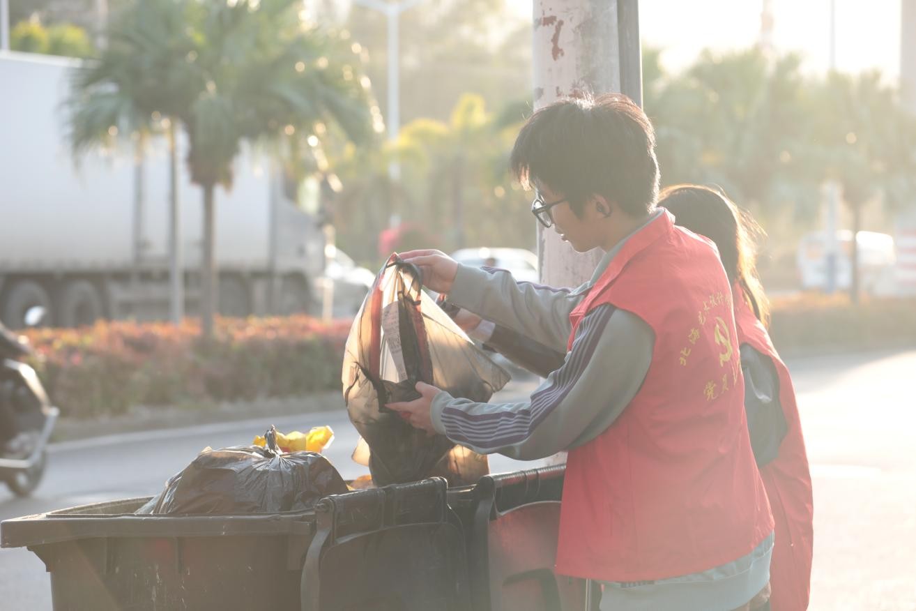 经过志愿者们的集中整治,长沙路至第二人民医院门口路段的环境卫生面貌焕然一新,路面干净整洁、公共设施完好、绿化带无杂物堆积,赢得了周边群众的一致好评。此次活动不仅有效改善了城市道路环境,更展现了建筑与环境艺术学院师生的责任担当与文明素养,让“奉献、友爱、互助、进步”的志愿精神落地生根。引导广大师生主动投身文明城市建设,用实际行动为北海市创城工作贡献建环力量。(王荣禄/摄)