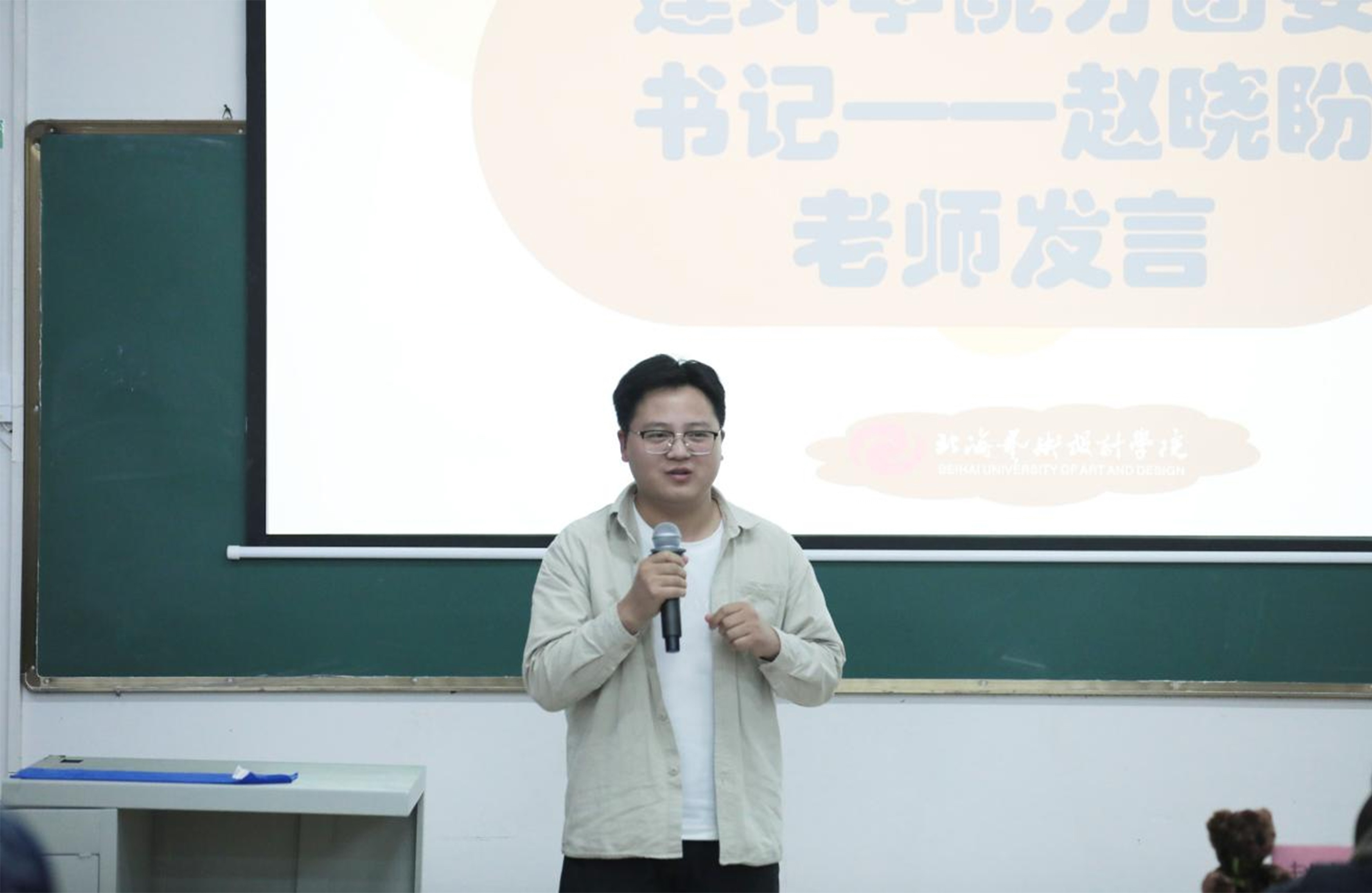 活动在主持人陈雨悦同学的开场中拉开帷幕,她向师生介绍了出席的领导与老师,点明活动以朋辈分享为核心的初衷。分享环节,环境设计专业2303班滕涣然学长结合专业课学习、学科竞赛经历,讲解了专业学习方法与实践平衡技巧;2308班朱乐宜学姐则围绕校园生活、职业规划展开分享,针对社团选择、实习准备等给出实操建议,两位主讲人的分享真诚接地气,引发新生强烈共鸣。