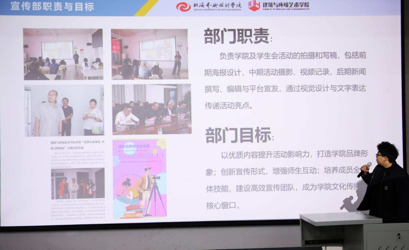 各部门负责人依次进行工作汇报。办公室的统筹协调、宣传部的全方位宣传、组织部的团学建设、学术部的学业帮扶、文体部的精彩活动、青志协的志愿服务、礼仪主持部的形象担当,各部门以详实的内容展现了本学期的履职成果。