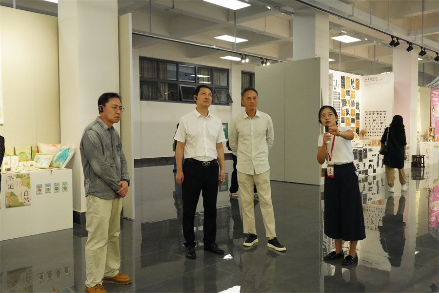 会前,广西艺术学院一行先后参观了我校“本科教学综合改革成果展”“校政企行协同育人 服务地方经济发展”展厅、创新创业中心、大师工作室、学生作品展等。