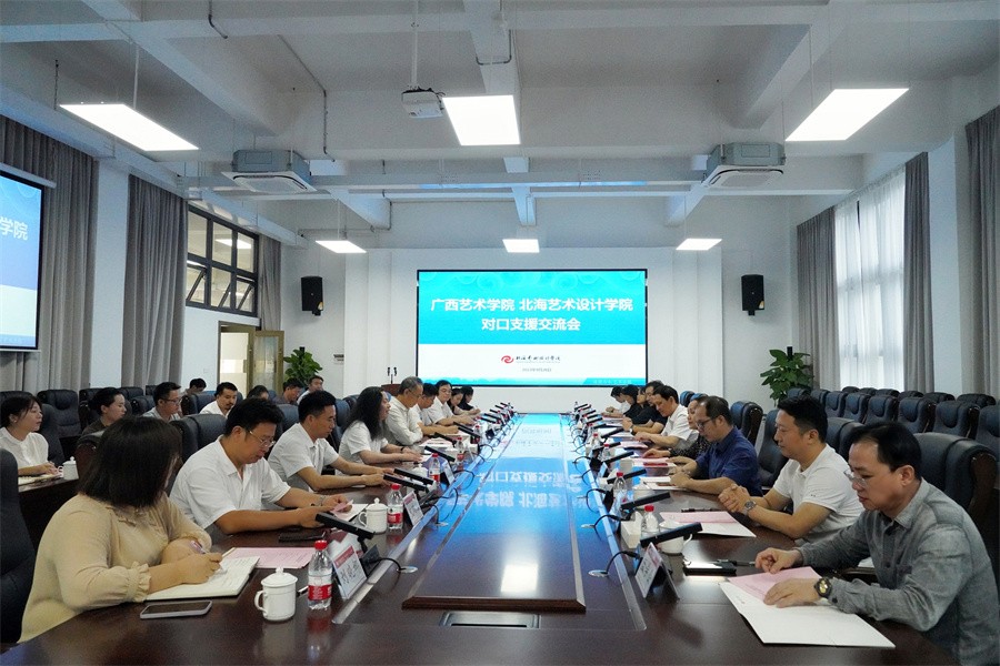 交流会由我校常务副校长胡胜主持。交流会上,广西艺术学院党委常委、副校长谢斌在讲话中表示,根据自治区教育厅的统筹安排,广西艺术学院和北海艺术设计学院双方对口支援将进入第三期合作,他对我校近年来巨大的成长变化、优异的教学成果、不断改善的基础设施和办学条件表示惊喜和祝贺,为更好地加强对口支援结对子的合作,希望双方能够针对下一阶段合作重点进行进一步探讨和交流,继续找准切入点,重点发力,全面铺开,充分利用双方优势资源,深化互通互助,一同为广西高等教育事业发展努力。