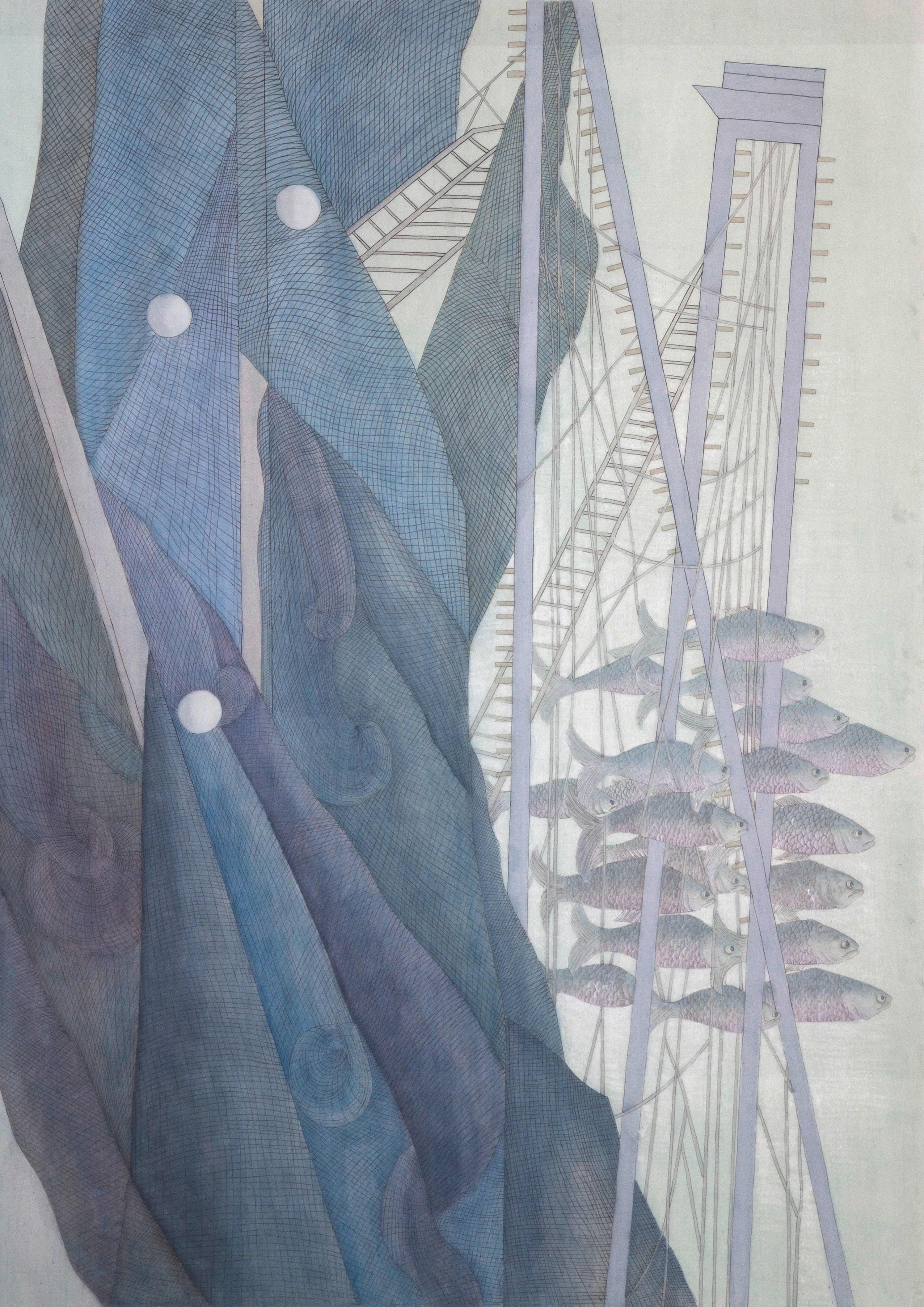 杨圆缘《渔获季节》  53cm×76cm   2023年 纸本水彩