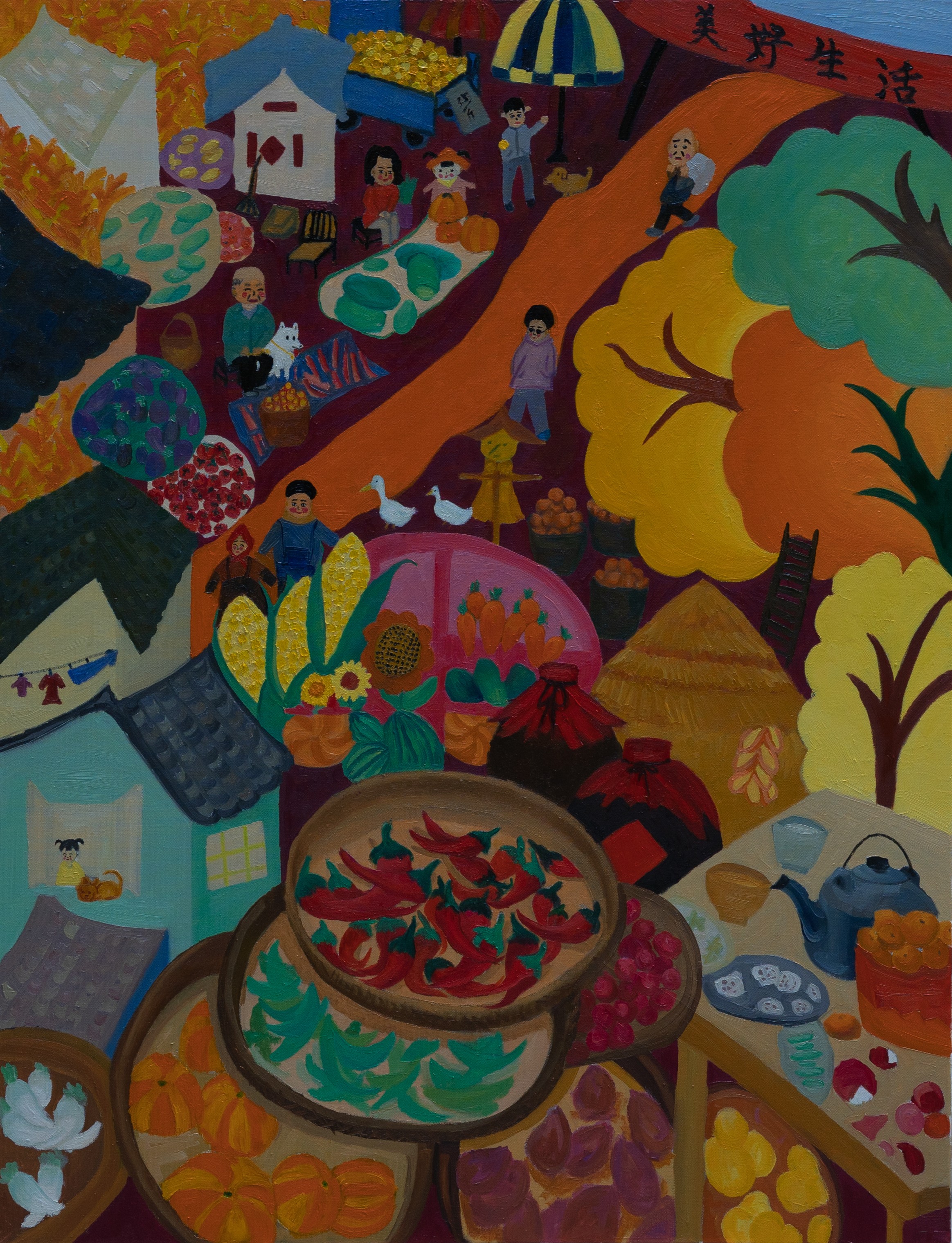 张馨萍《青果市集》115×160cm  2023年 纸本