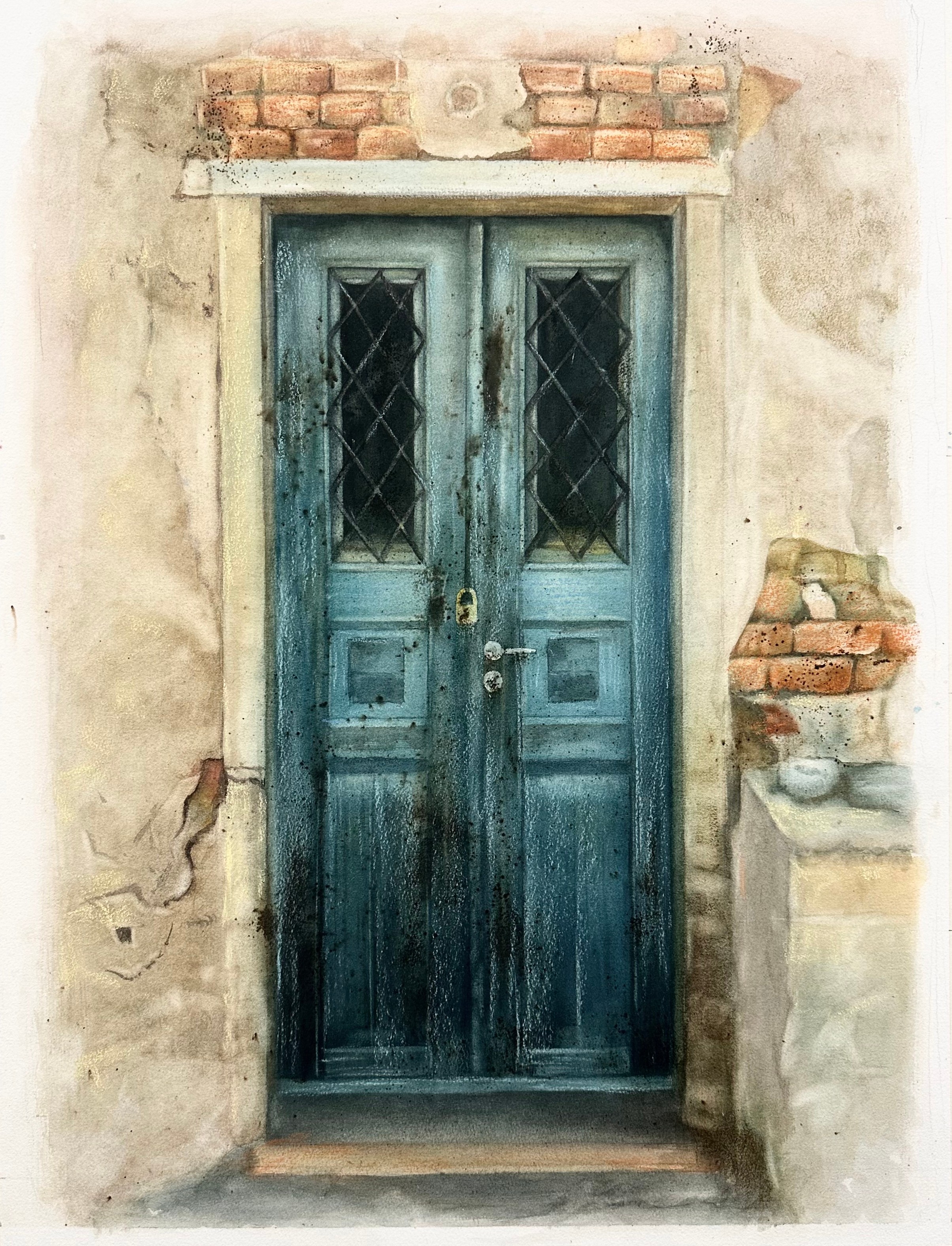 杨嘉丽《门的故事》 76cm×52 cm  2023年 纸本水彩