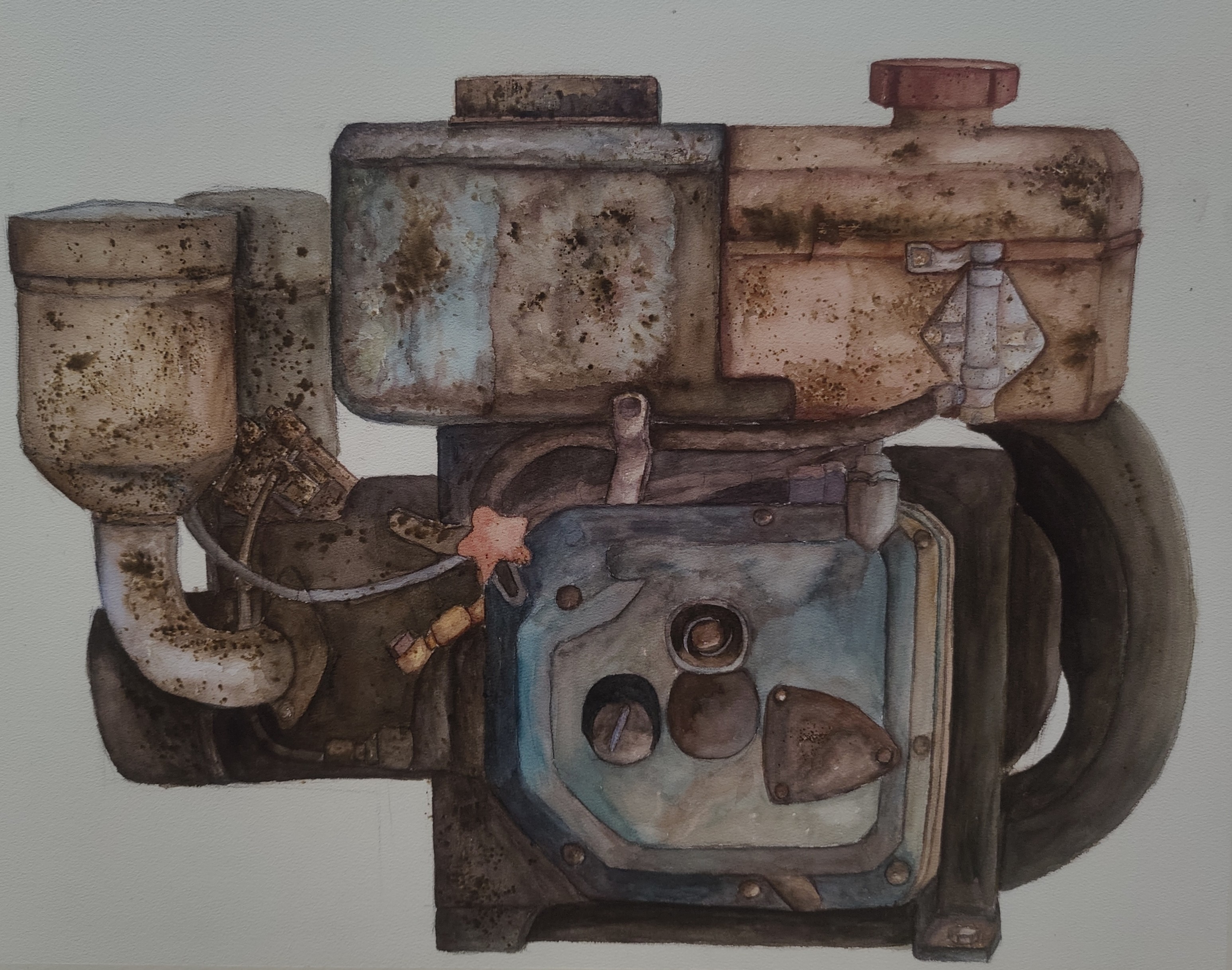 李贝贝 《摩托车的心脏》 75cm×52 cm  2023年 纸本水彩