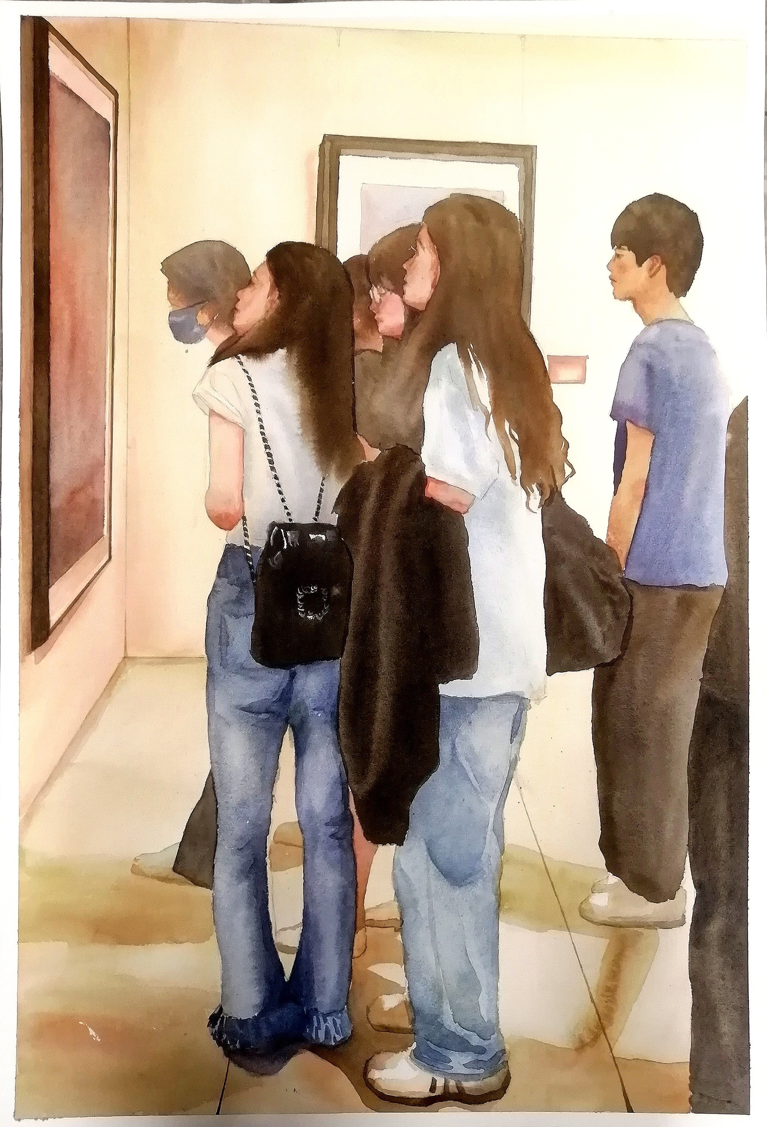 韦宇欢《阅读》48cm×55cm 2023年 纸本水彩