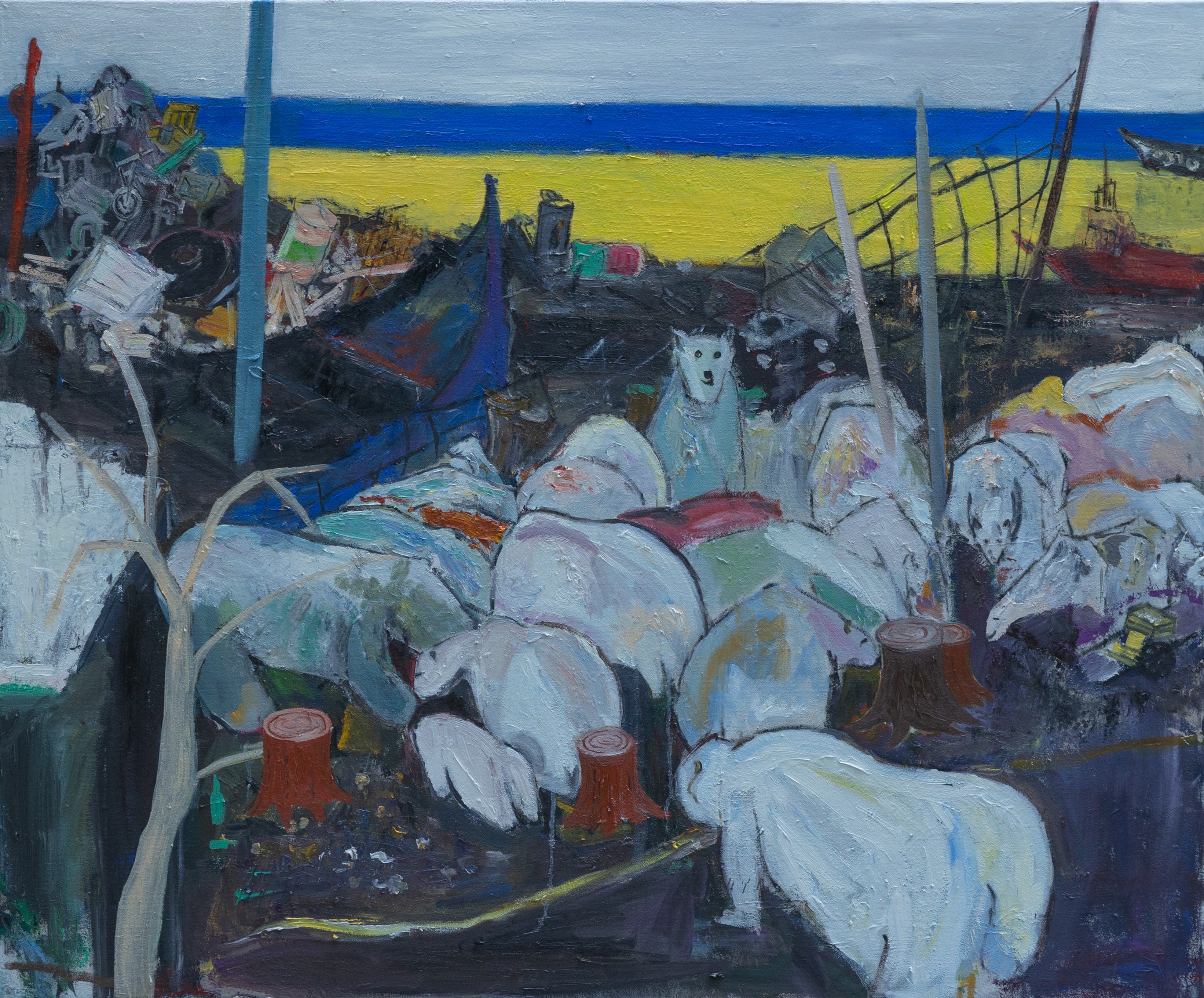 金燕玲《保卫黄河》120cm×161cm 2023年  纸本