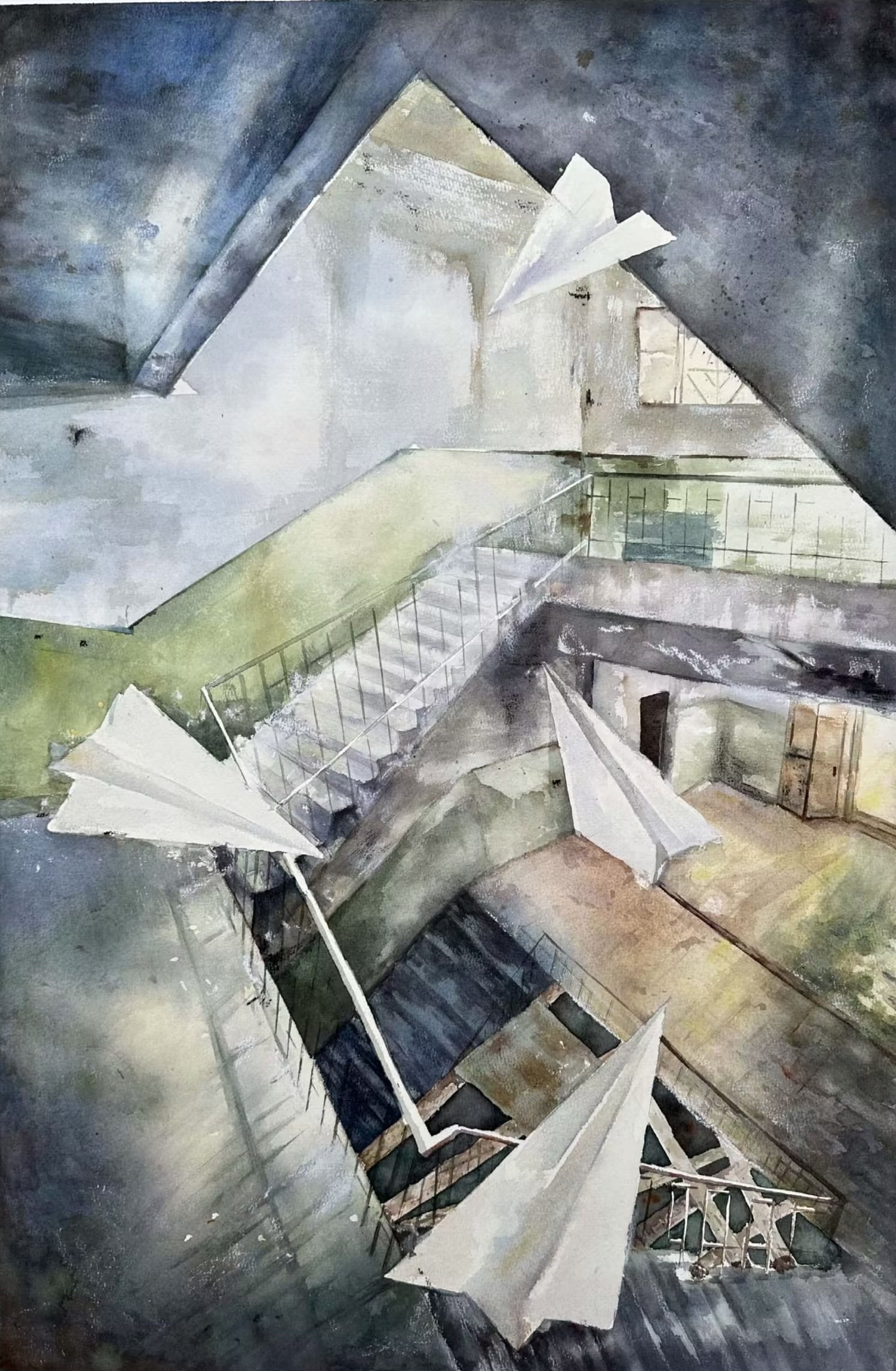 邵俊茹《记忆的小窗》76cm×53 cm  2023年 纸本水彩