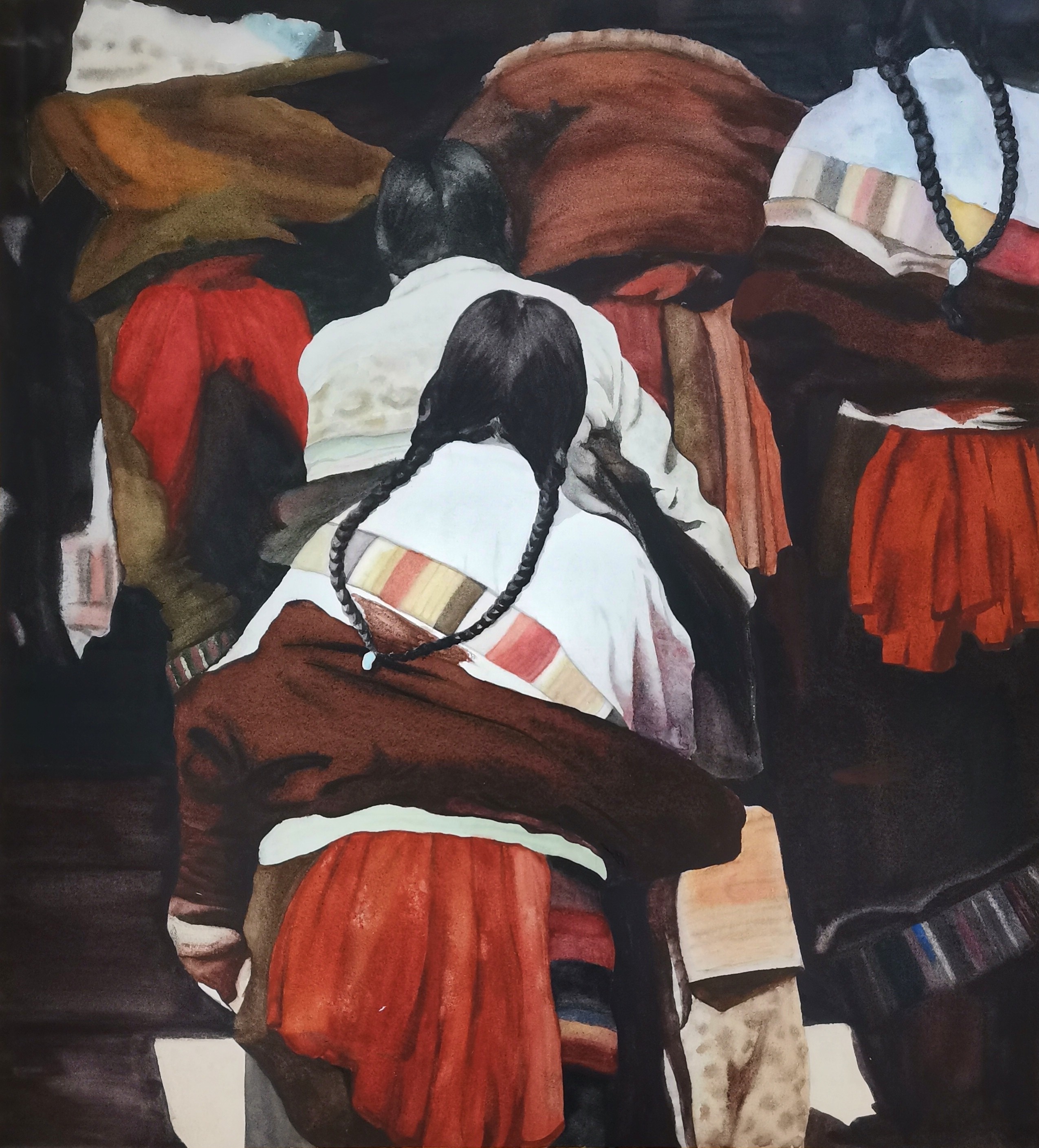 郭梦园  《朝圣的人群》 50cmx50cm  2023年 纸本水彩