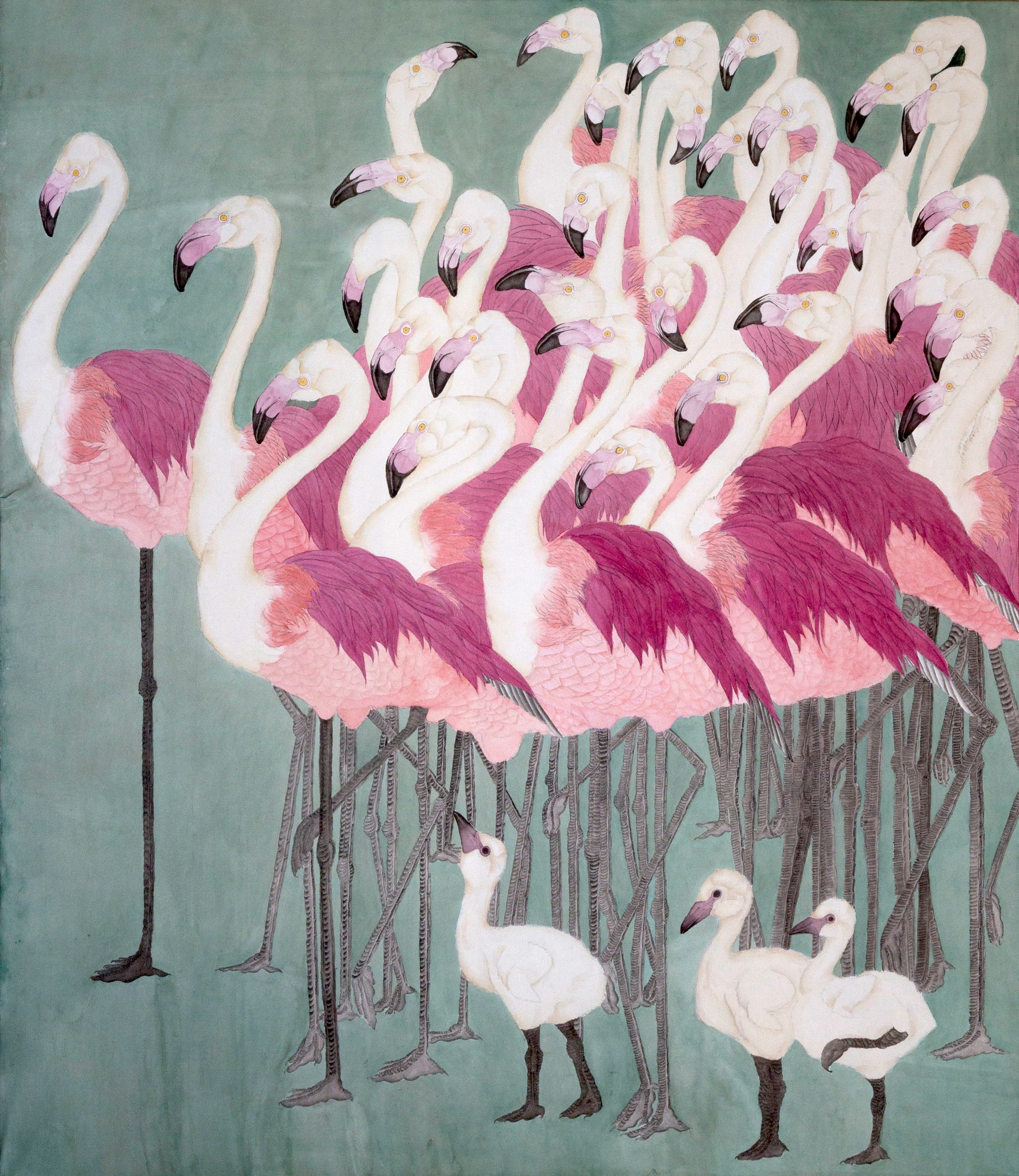 徐子烨《火烈鸟群》150×175cm  2023年 纸本