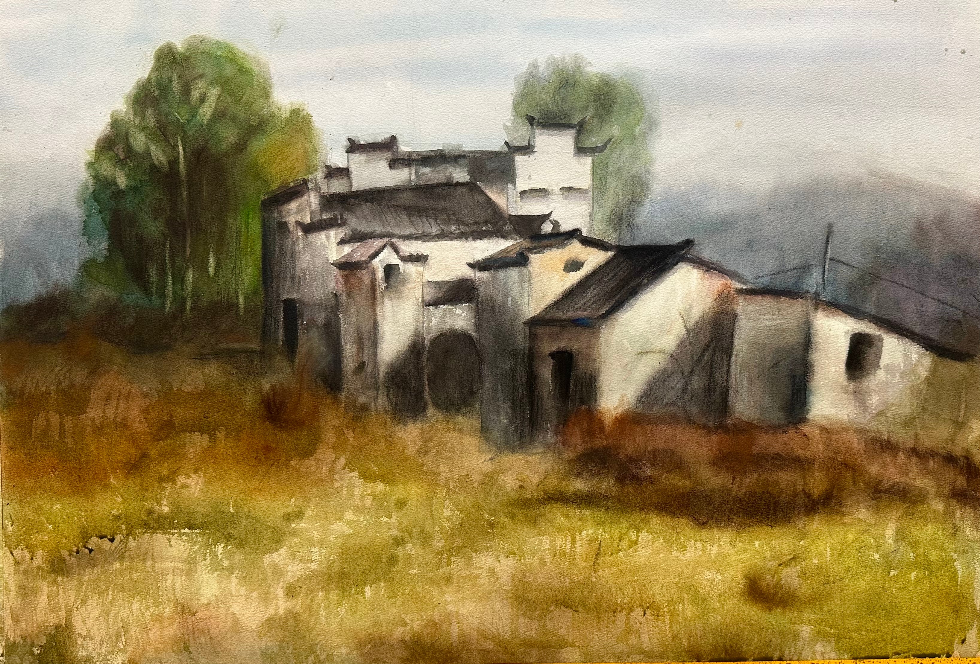 吉克妞牛 《老宅子》 75cm×52 cm  2023年 纸本水彩