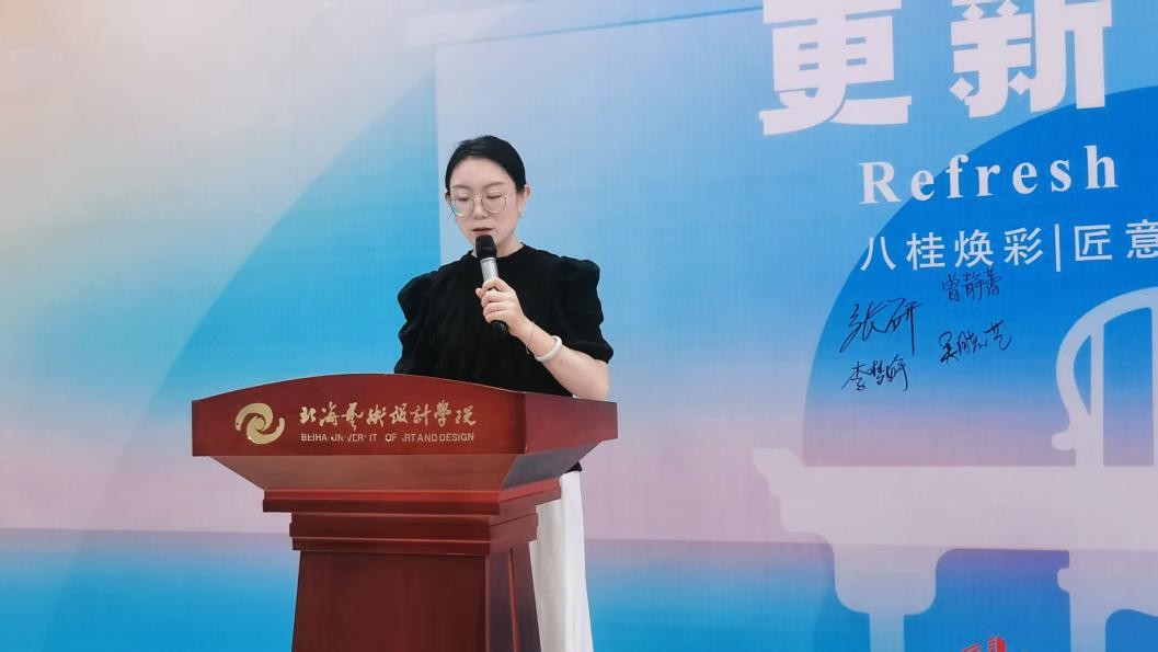 为深化应用型人才培养成果,推动设计教育与地域文化创新融合,2025年6月9日,建筑与环境艺术学院2023级《家具设计》课程暨金橄榄杯“更新·绽放”主题家具设计成果展颁奖典礼在我校艺德楼八楼展厅举行。北海艺术设计学院科研处处长刘晓娜、教务处副处长石厚莉等校领导,同建筑与环境艺术学院党总支书记庞定坤、副书记曲玥,副院长蔡世伟、张乐平等学院领导及师生代表共同出席,颁奖典礼由郑颖琼老师主持。