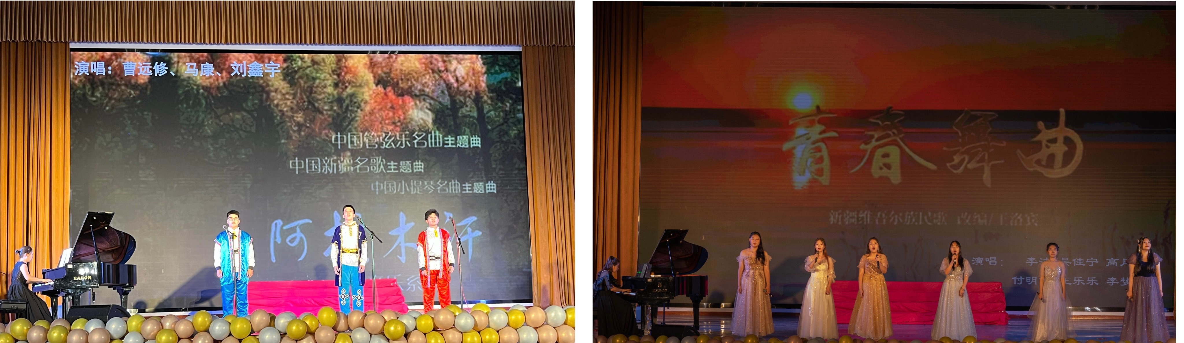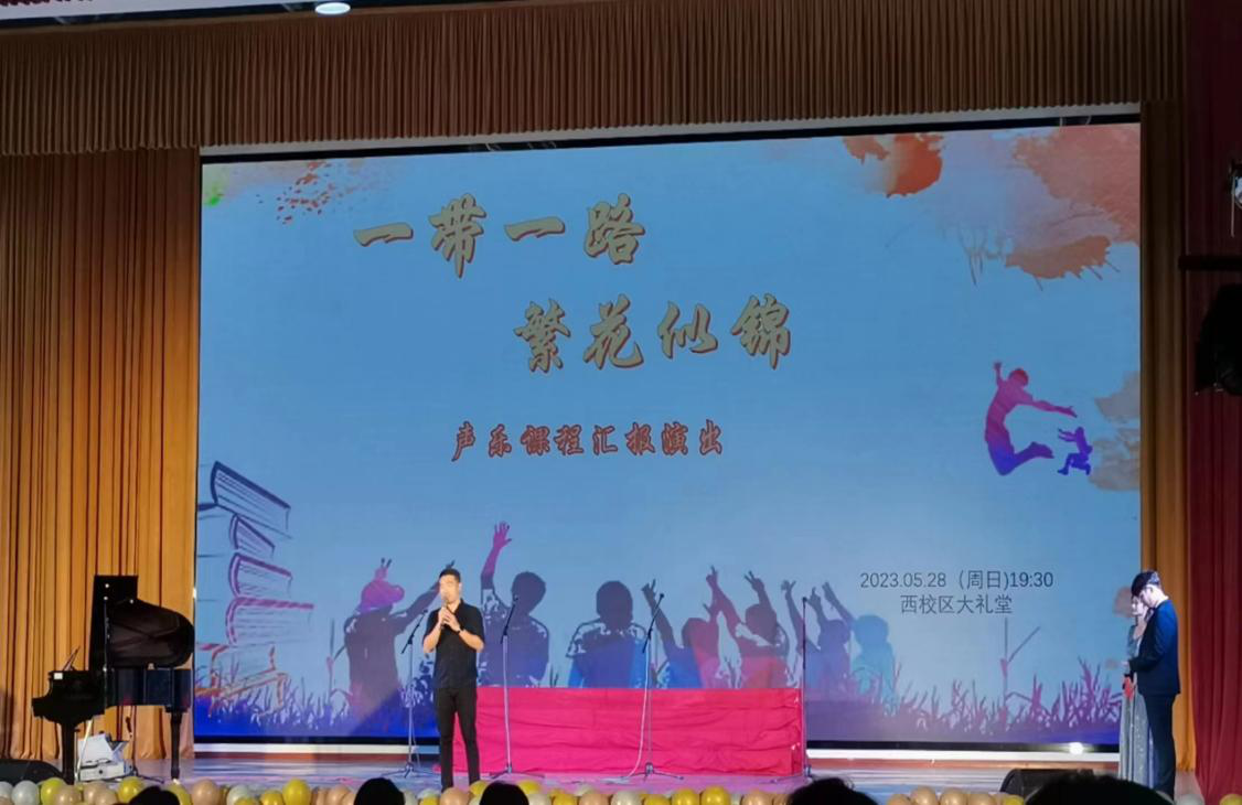 青春启航,奔赴星辰。2023年5月28日,学院艺术教育专业声乐课程汇报演出在西校区大礼堂成功举办。学校党委委员刘承初学院副院长李水亮、李谦。艺术教育、学前教育专业师生应邀出席本次汇报演出由学院艺术教育教研室承办,艺术教育专业2020、2021级音乐班全体学生参演。整场演出凸显“一带一路,繁花似锦”主题,以学生为主、老师为辅,通过师生默契合作,歌声悠悠,青春浪漫,为现场来宾奉上一场精彩绝伦的艺术盛宴,共同留下了一个美妙难忘的声乐记忆。