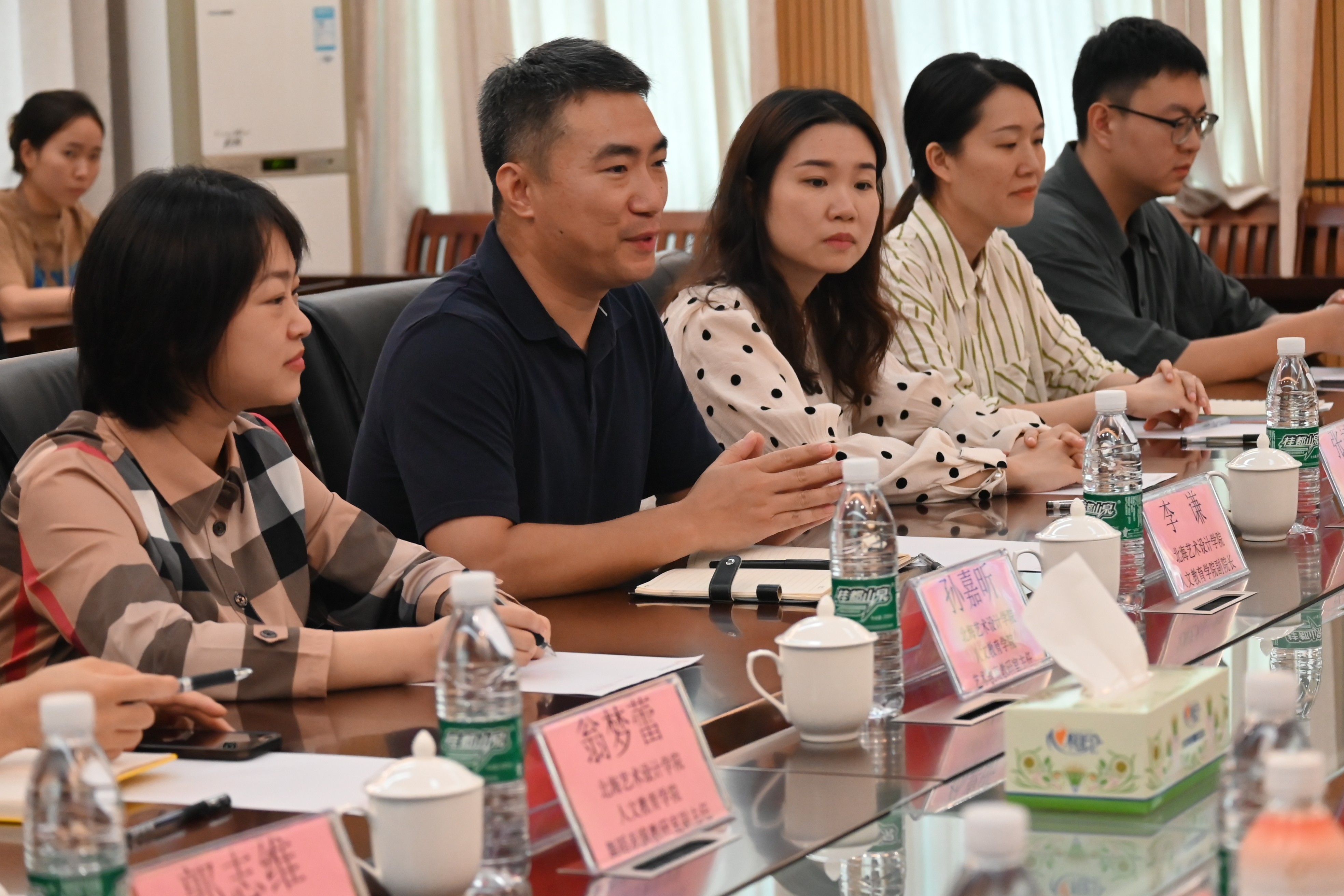 广西外国语学院艺术学院院长陆卓宁、副院长陈佳、舞蹈系、音乐系主任、乐团、合唱团负责人及骨干教师出席会议。陆卓宁院长对我校一行的到访表示热烈的欢迎,并详细的介绍了广西外国语学院艺术学院发展历程、办学成果、专业建设、人才培养方案制定等方面的基本情况。双方先后就学院规模、发展建设历程、建制、评估工作等情况进行了热烈的交流,并对我校申办音乐新专业以及舞蹈表演专业现有的课程建设、课程体系、实践教学、人才培养方案等内容进行了深入探讨。