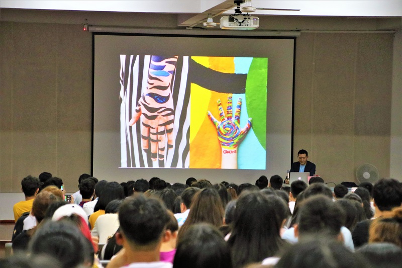 2018年4月3日晚上7:30于西校区伦理楼107。中央美术学院教授、北京2008奥运奖牌主创设计师肖勇教授莅临我校名师大讲堂,给我校师生带来一场题为《视觉语言与实践》的精彩讲座。广大师生现场聆听讲座。