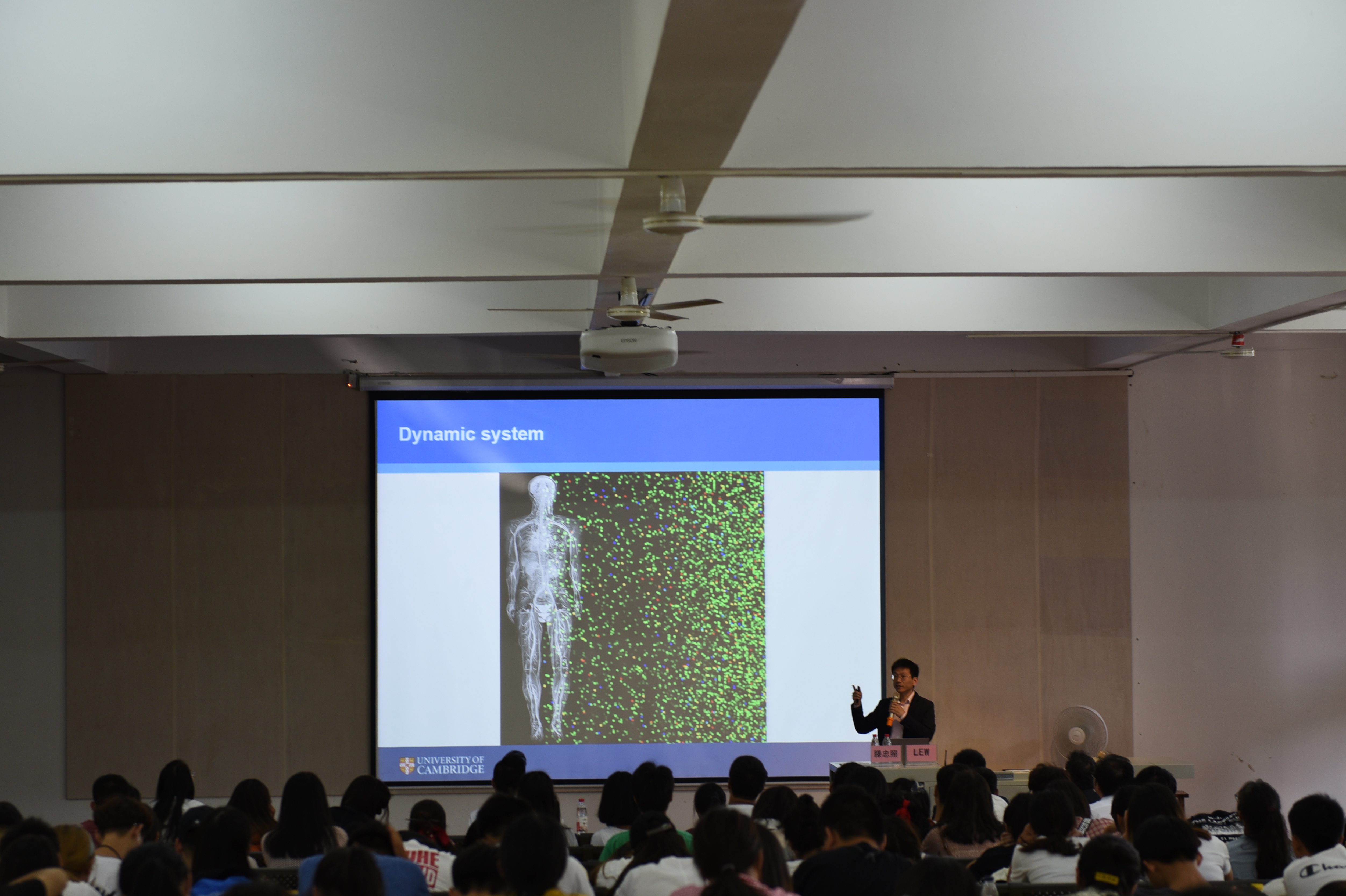 随后,他列举了手机摄像头、喷气式飞机等皆是剑桥师生所发明创造,造福了人类的日常生活也促进了文明的进步,这些都展现出剑桥大学培养出来的人才对世界的贡献。接着,他介绍了剑桥大学的地理位置、四季气候以及用自己拍摄下的风景图片向同学展示了剑桥大学不同姿态的美。最后,滕忠照先生还和同学们分享了自己的医学研究项目。滕忠照先生的演讲既向大家展示了剑桥大学的各种风景,也有关于对于科研项目应秉持的严肃态度,朴实无华的语言更是赢得在场听众的阵阵掌声。