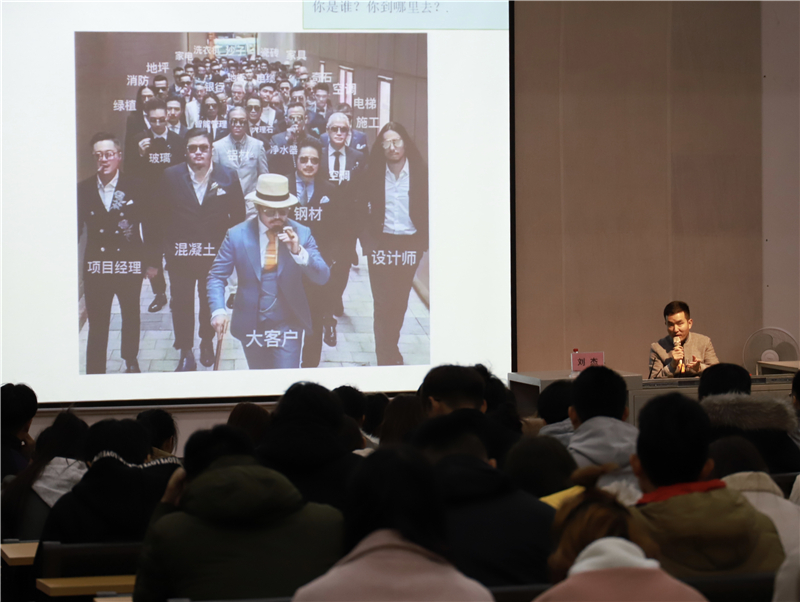 讲座开始前,刘杰教授通过一些有趣的图片向同学们分享了他对设计行业的理解和思考,阐述了设计行业的设计流程,并强调了园林景观设计流程分为方案设计和施工图设计两种概念。“搜尽奇峰打草稿,博览群书好吹牛”,刘教授幽默的语言让同学们明白了多采集素材,博览群书的重要性,这样才能迸发更多灵感,创造出佳作。