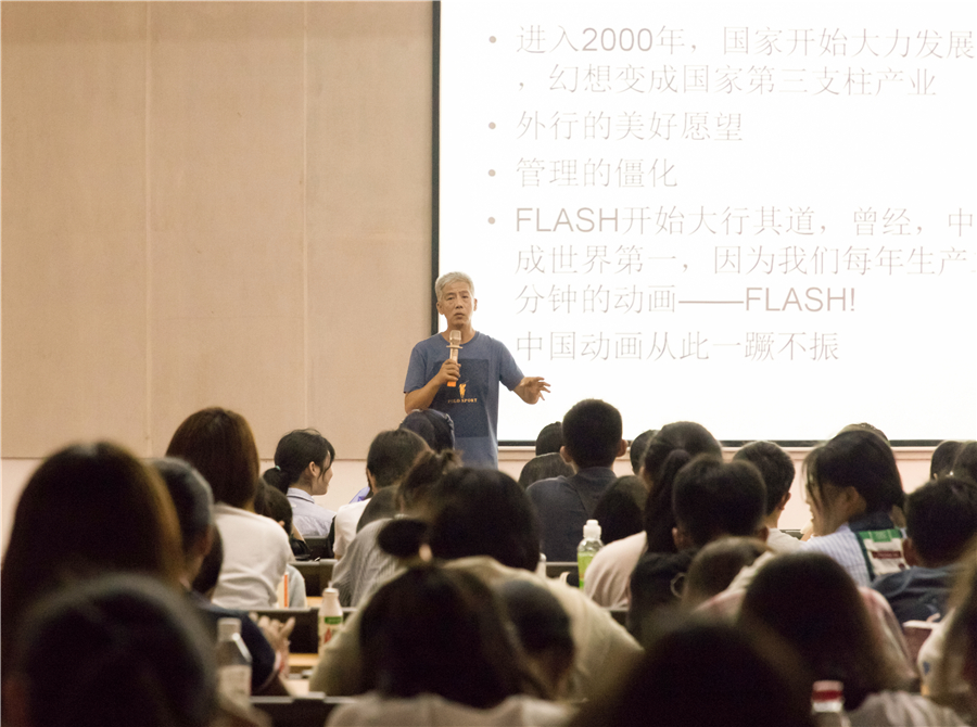讲座开始前,黄惠忠教授对现场师生表达了真挚的问候,对于能够再次来到北艺进行交流与学习表示十分荣幸。接着,黄教授以动画行业发展产生差别这一问题引出讲座内容,并通过自身制作动画的经历简向同学们介绍了中国动画行业发展的艰苦历程。