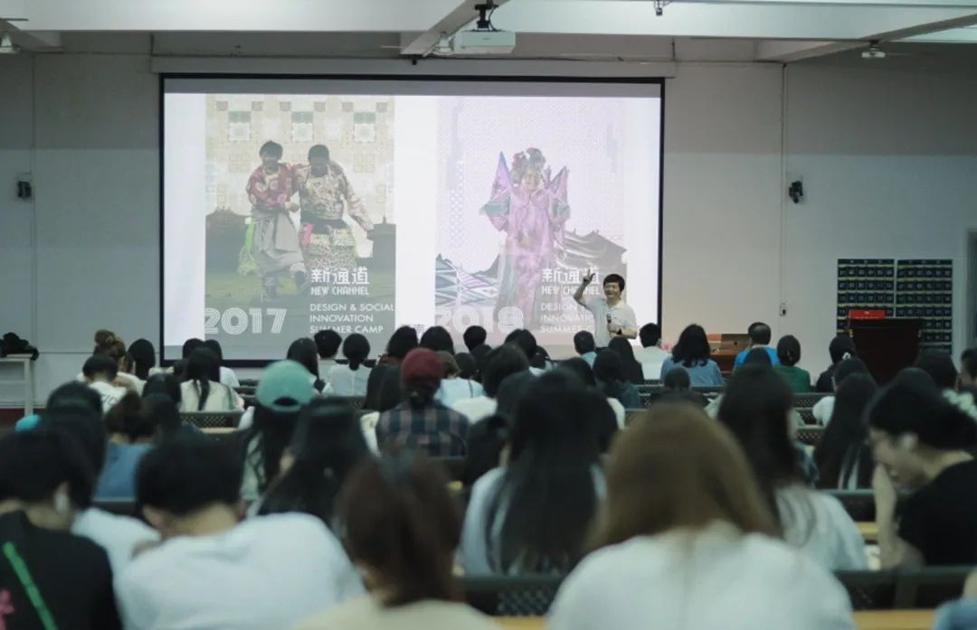 讲座过程中,何人可教授介绍了他基于侗族文化设计创新的项目《新通道设计与社会创新项目》。他指出,所谓通道指的是湖南省怀化市通道侗族自治县,新通道则包含让传统文化走向现代设计,让中国文化走向世界,通过精准扶贫让当地特色文创走向世界三方面内容,设计与社会创新便是利用专业知识来解决社会问题。何教授表示因为交通闭塞,外界影响小,具备亲密的社区关系,通道县地域文化得以完整保存。对此,他表示保持传统文化最重要的一点是要保证社区的可持续性。