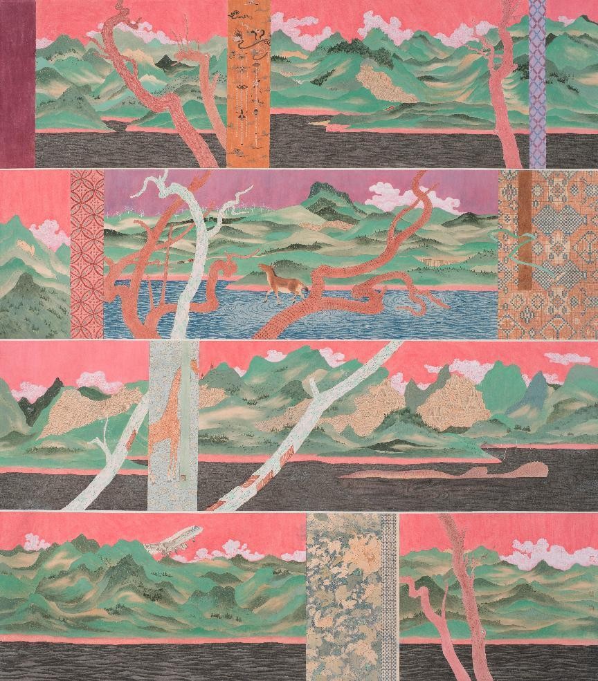 王 敛《大地遗珍》180cm×200cm 绢本设色 2021年
