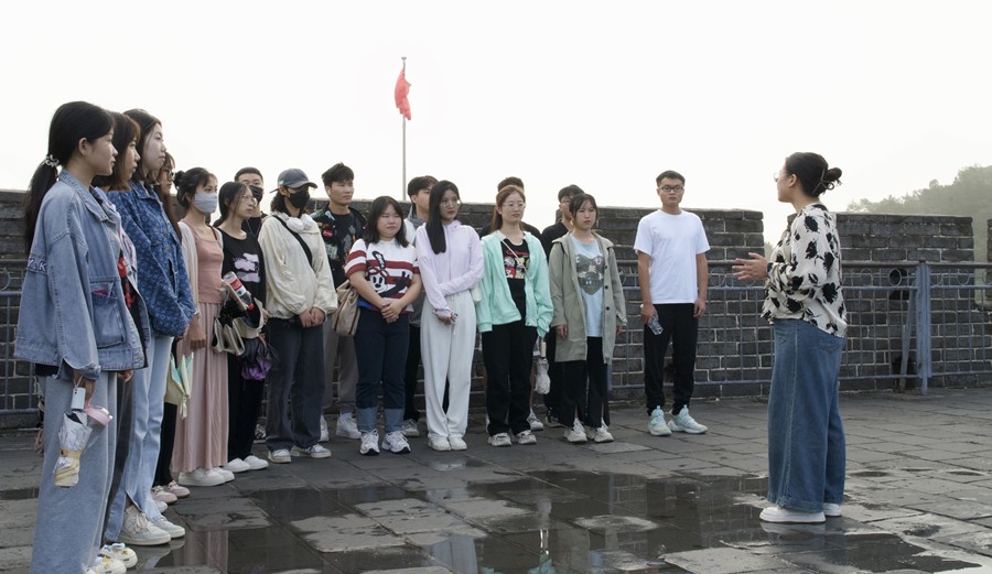 中国万里长城的珍贵价值不仅体现在物质层面,还体现精神层面。长城上,马克思主义学院院长姜献生教授、韦邕青老师现场系统详细地讲解了长城的历史、建筑、军事、文化等内容,激发提升了学生的文化自信和民族自豪感,并耐心回答了学生们提出的问题。现场氛围活跃,参与度极高。