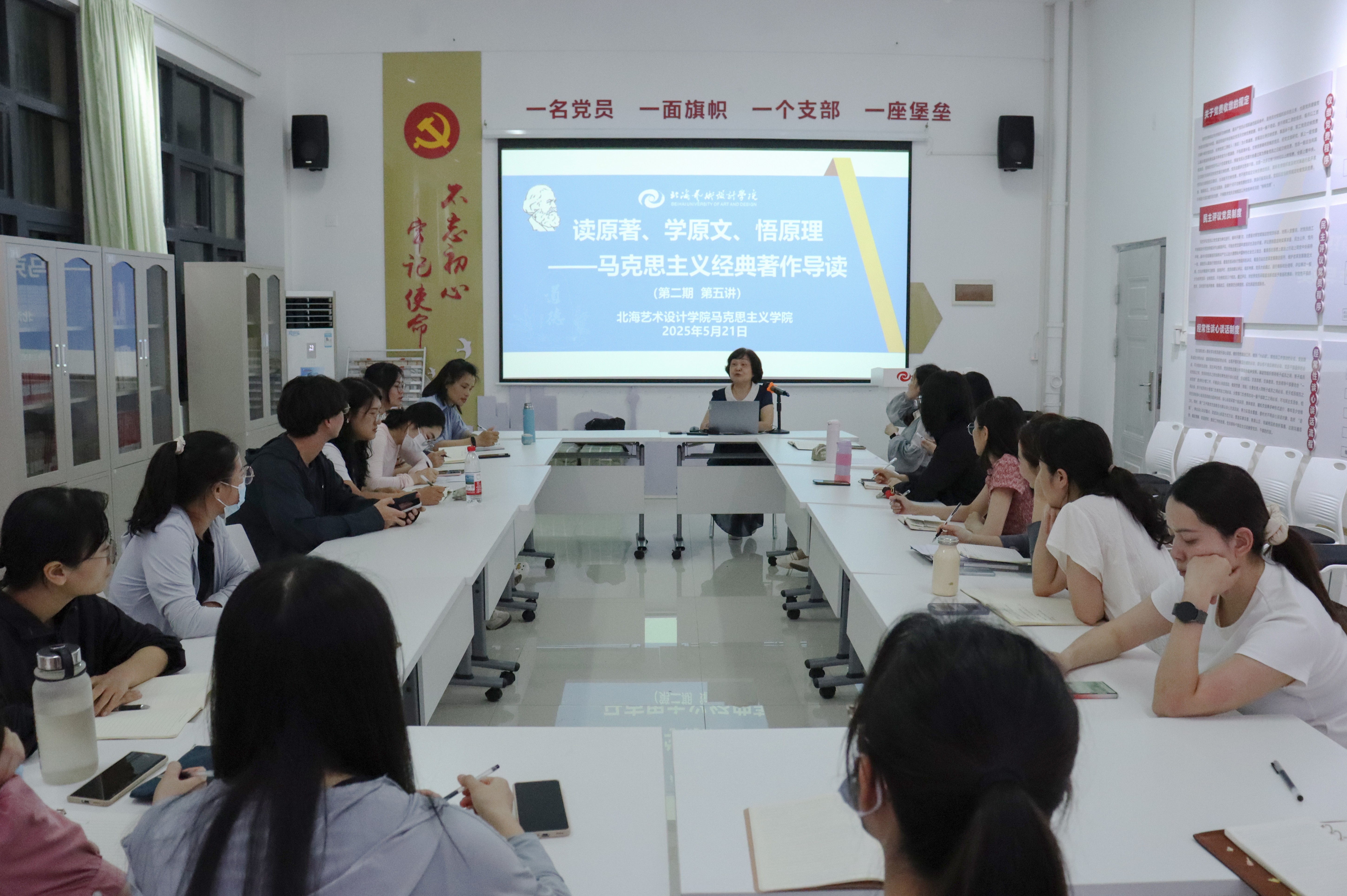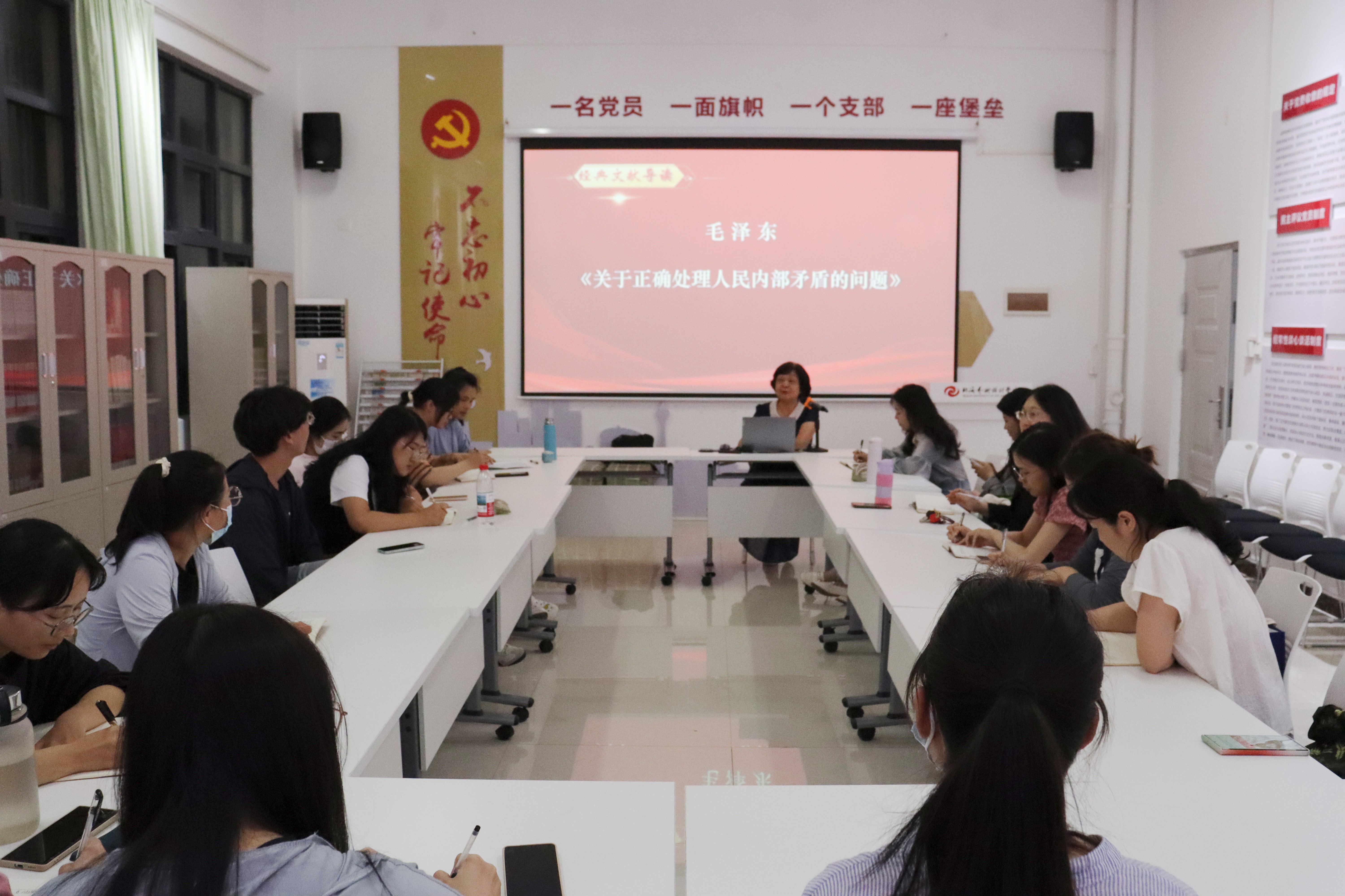 5月21日晚上19:30,马克思主义经典著作导读系列活动第二期第五讲在西校区行政楼103成功举行,活动由我院副院长罗秋梅主持,覃红教授主讲《关于正确处理人民内部矛盾的问题》,学院全体中青年教师参加。