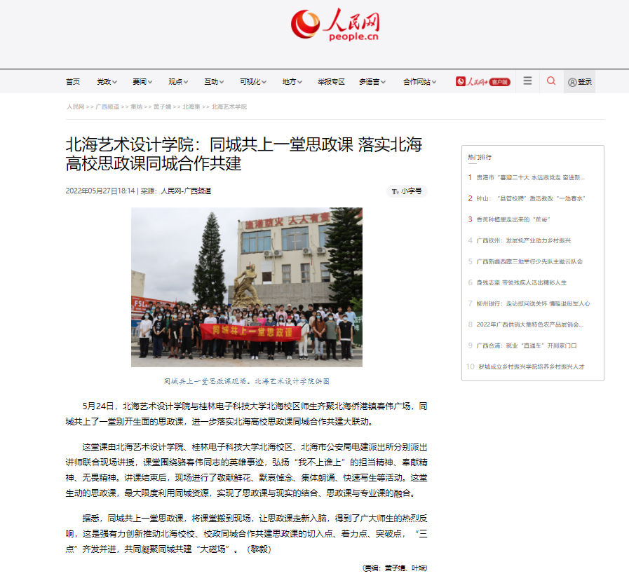 【人民网】北海艺术设计学院:同城共上一堂思政课 落实北海高校思政课同城合作共建