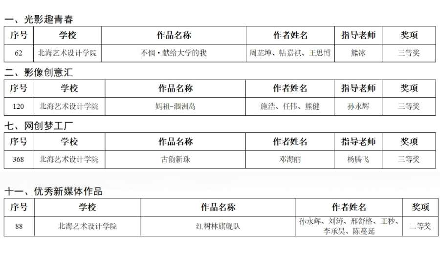 第十一届全区大学生网络文化节和全区高校网络教育优秀作品展示大赛获奖名单