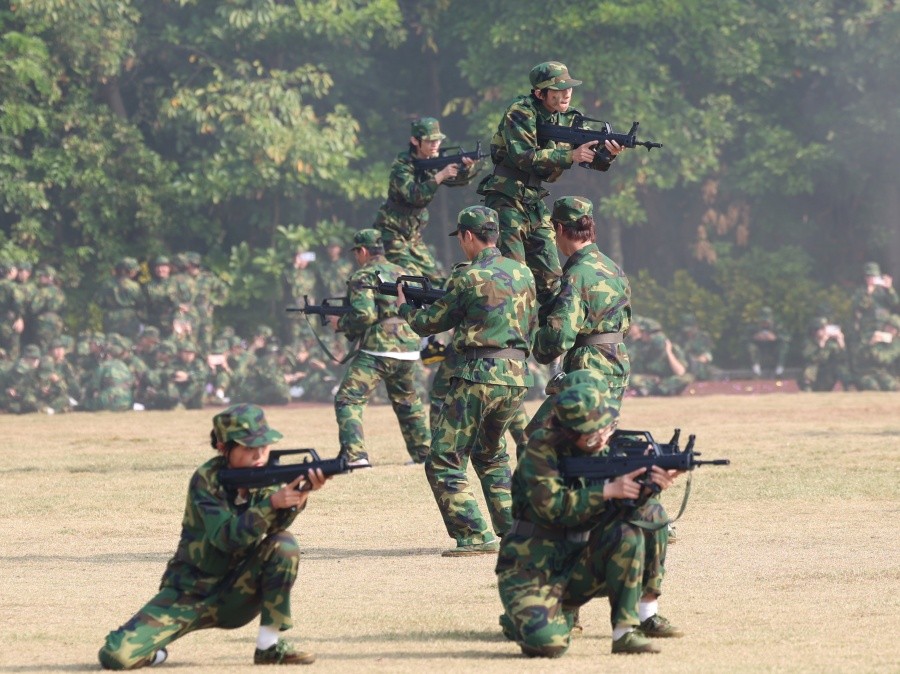 操场砺兵扬少年意气,迷彩戎装绽青春光芒。2025级学子在军训成果会操展示中矫健挺拔,气宇轩昂,他们队列严整如磐石,步伐铿锵震人心,口号雄壮贯长空,气势如虹撼天地,这昂扬的青春风貌,正是北艺青年学子蓬勃活力的生动写照。