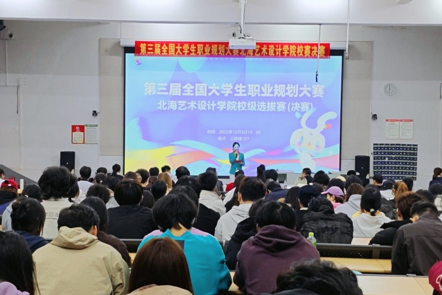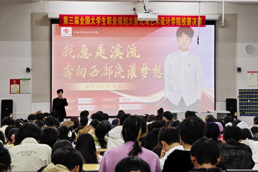 为深入贯彻落实党中央、国务院关于高校毕业生就业工作的决策部署,切实加强我校学生职业生涯教育和就业指导,增强其职业规划意识与就业竞争力。12月5日,第三届全国大学生职业规划大赛北海艺术设计学院校赛决赛在学校公德楼107教室举行。大赛以“筑梦青春志在四方,规划启航职引未来”为主题,搭建起生涯教育大课堂、人才供需对接大平台与就业服务大市场,为全校学子提供了展现职业理想、提升就业竞争力的优质舞台。