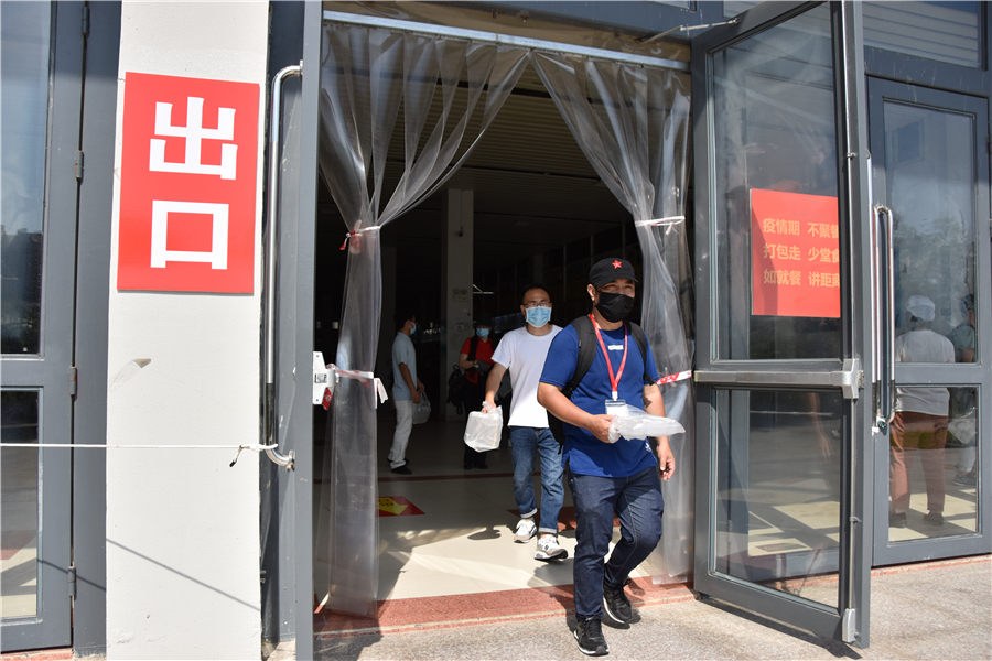 本次模拟演练按照预定流程开展返校进入校门、返回宿舍、教室上课、食堂取餐等四个环节演练。模拟学生返校后,消杀行李、扫码入校、测量体温、核验身份进入校园;返校经体温测量、扫码验证进入宿舍;上课时经体温测量进入教学楼;下课前往食堂排队测温取餐的四个场景。针对各个场景中出现发热学生实施应急处置进行了重点模拟演练,展示了体温复测、询问诊断、隔离处置、报告疫情、转移病人、现场消杀、心理安抚等系列处置过程。