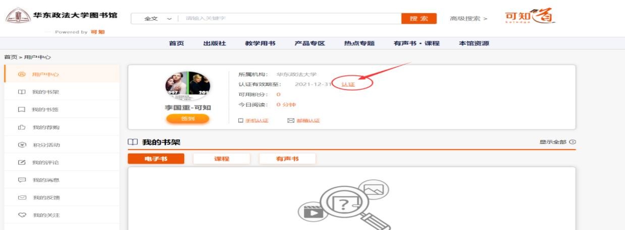 1)校内IP范围内的用户,进入“用户中心”点击“认证”,选择“认证方式一”,即可实现“IP认证”。