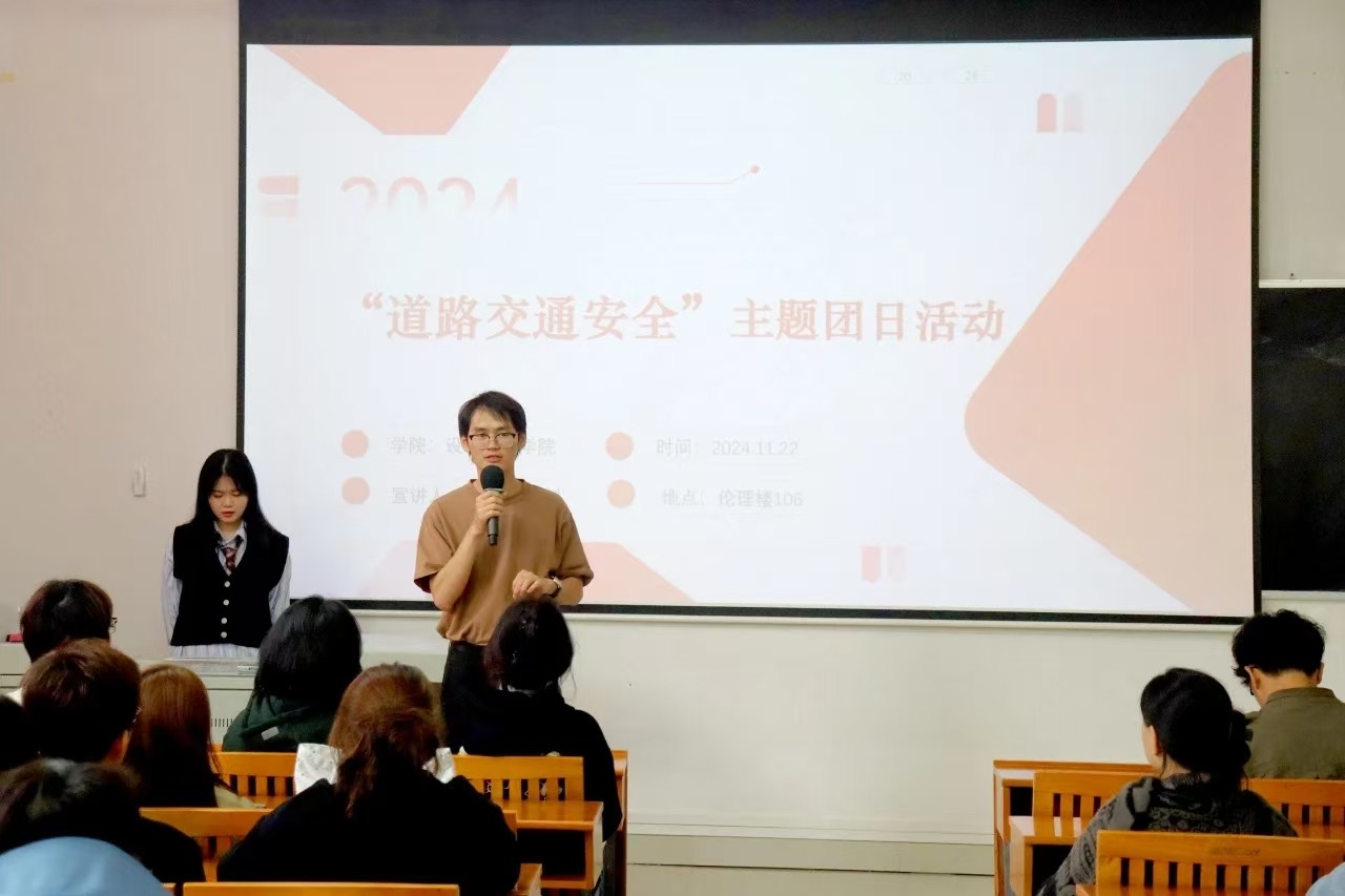 活动伊始,王慧老师向全体团支书讲述道路安全的必要性,强调交通安全关乎每个人的生命安全、家庭幸福及社会稳定状况,更是人生的必修课。随之,王慧老师结合近期发生的多起交通事故以及播放“道路安全出行视频”进行宣讲,希望团支书们应引以为戒,并于会后在自己班级上进行道路交通安全出行科普,以提高更多同学的交通安全意识和自我保护能力。