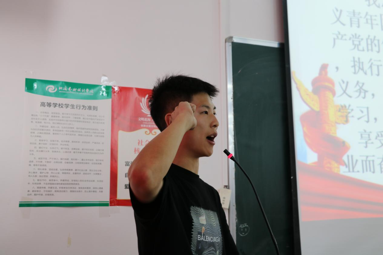 活动开始时全体同学起立举起右拳,重温入团宣誓词,然后进行关于红军长征的小型故事分享会,其中还进行了以“红色传奇、红色精神、红色文化”为主的“有奖竞猜”、一起举起红旗合唱《我和我的祖国》等团体小活动,该团支部还在操场举行了垃圾清理活动,最后组织同学们在横幅上签字并留下全体合照。