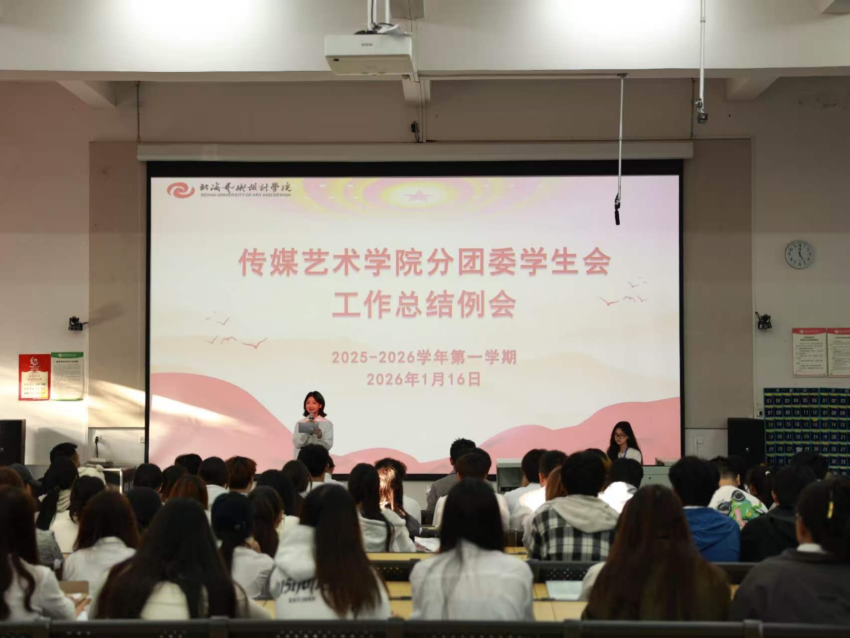 为全面总结本学期传媒学院分团委学生会的工作成果,明确未来的发展方向,1月16日,传媒艺术学院分团委学生会2025-2026学年第一学期期末总结大会在西校区公德楼107教室顺利开展。学院院长杜博、分团委书记吕梓豪及分团委学生会全体成员参加大会。