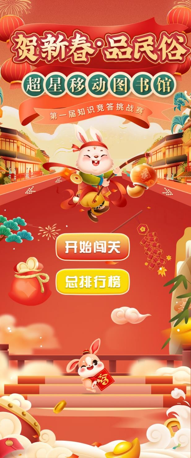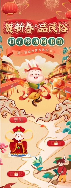 值此新春佳节之际,我馆特组织广大师生参加“贺新春 品民俗”超星移动图书馆知识竞答挑战赛,欢迎大家积极参与,让我们一起感受浓厚的新春佳节氛围吧!
