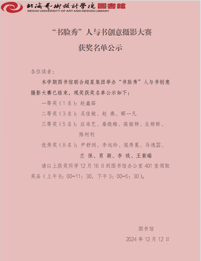 来源:图书馆综合办公室 责编: 陈智滨 作者: 张新玲 发布时间:2024-12-12 浏览量:1598