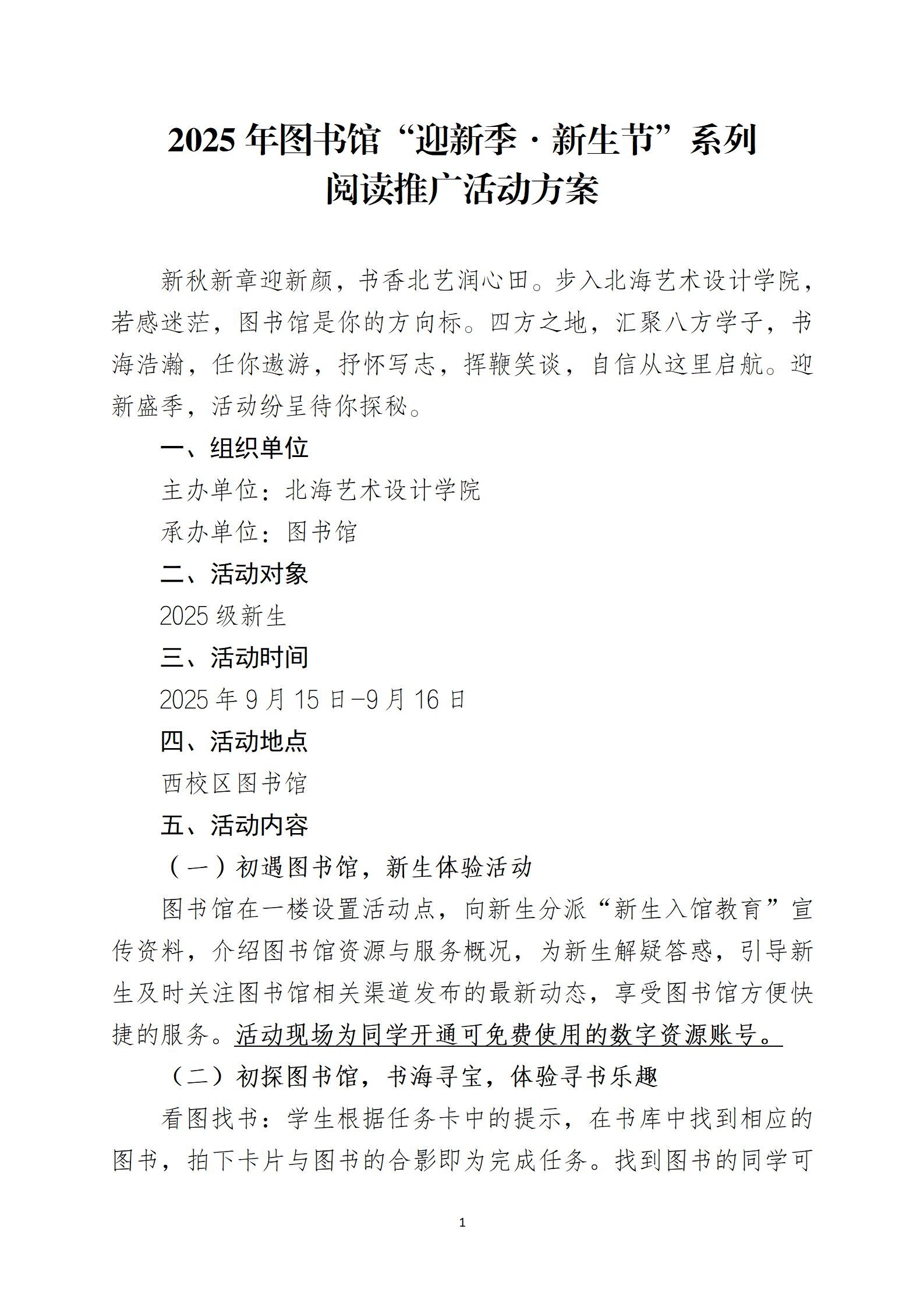 2025年图书馆“迎新季•新生节”系列阅读推广活动方案