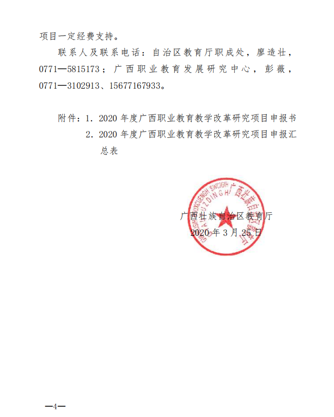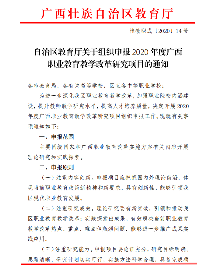 自治区教育厅关于组织申报2020年度 广西职业教育教学改革研究项目的通知