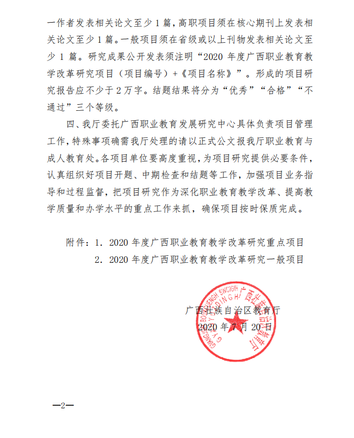 自治区教育厅关于公布2020年度 广西职业教育教学改革研究项目的通知