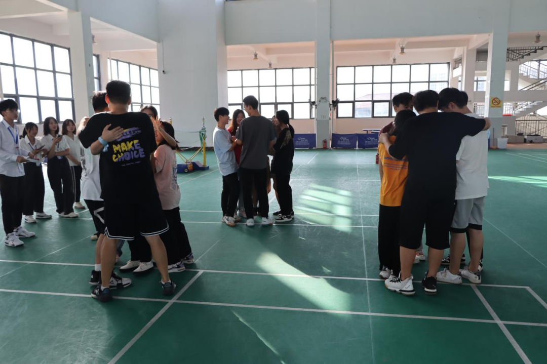 所有同学围成圆圈后沿顺时针奔跑,主持人站在圈中随机报数,同学们需在三秒内找齐与数字相等的人数抱在一起。一人落单则暂停游戏,由该队派出一名同学随机抽取一道消防问题并进行回答。回答正确该队继续游戏,反之,全队淘汰。游戏二音乐传球: