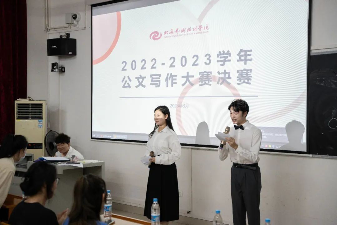 为丰富校园文化生活,通过以赛促学的方式,让同学们了解公文、学习公文。由北海艺术设计学院学生会办公室举办的公文写作大赛决赛于2023年3月24日在伦理楼103开展。