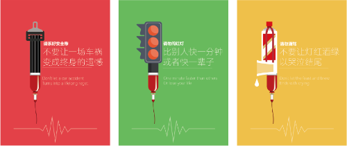 海报类:优秀奖  《交通安全系列作品-勿闯红灯,戴好头盔,请勿超载》