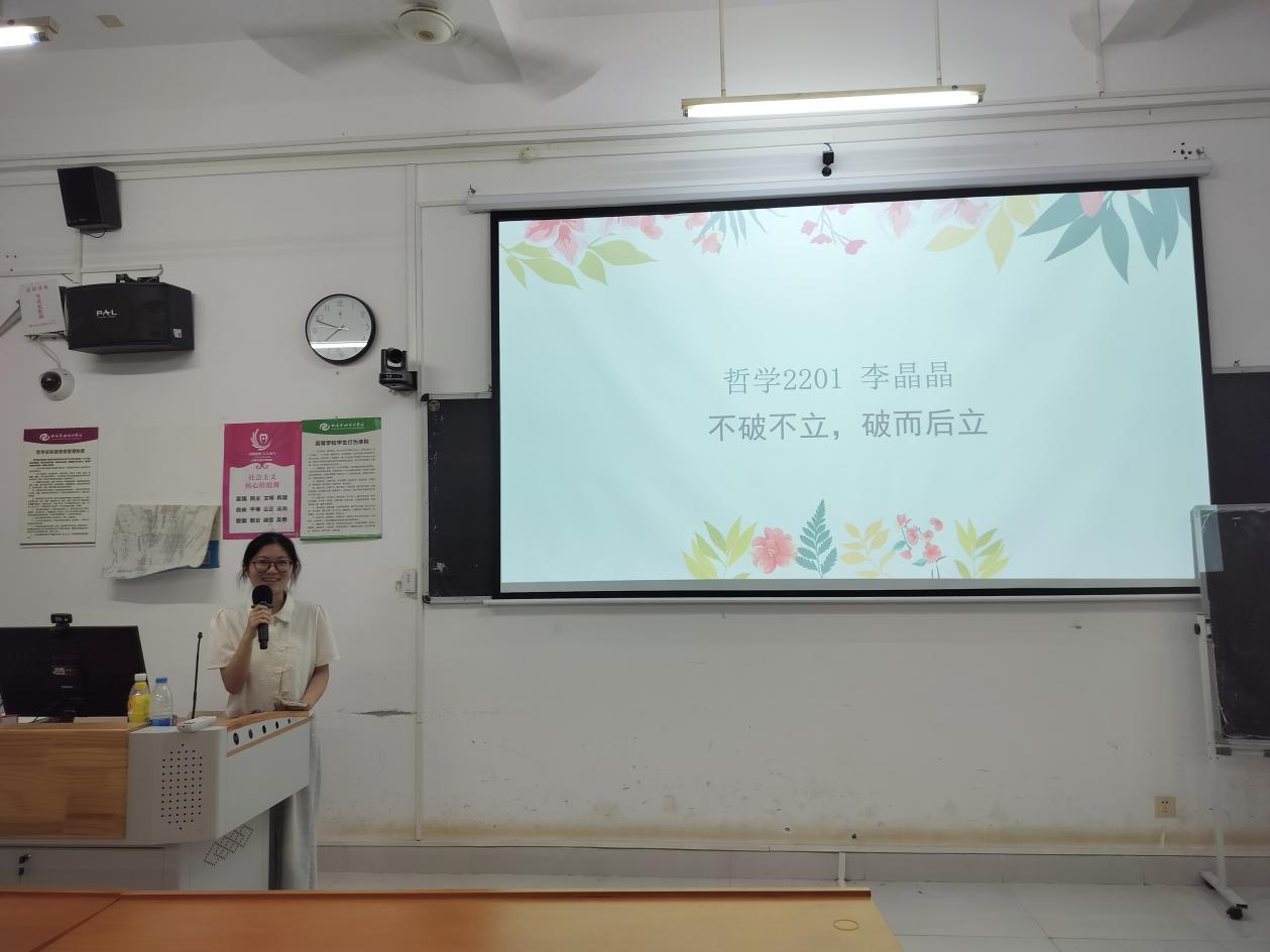 活动伊始,主持人梁兵老师简明扼要地介绍了活动流程,为整场活动拉开序幕。随后,哲学学院党支部、团总支书记谢伟以 “以诚为本,以信立人”为题,为同学们带来了一堂意义深远的诚信教育课。谢伟书记深入细致地讲解了国家奖助学金、优秀学生奖学金、生源地助学贷款、勤工助学、学校困难补贴、征兵入伍补偿等资助项目的申请条件,同时围绕国家助学贷款获贷学生的征信和还款知识展开详细教育。他号召全体同学积极行动起来,共同营造诚信为荣、感恩祖国的浓厚校园文化氛围。此外,谢伟书记着重提醒同学们,要合理使用奖助学金,既可以将其作为生活补贴,缓解家庭经济压力,也可以用于社会实践中,参与对提升自身综合素养有益的社会活动。他特别强调,同学们应崇尚节俭,避免在现有开支基础上进行不必要的消费升级,杜绝攀比式高消费行为。