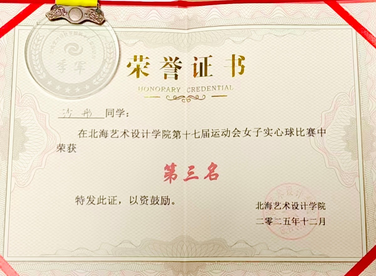 服饰2503班的沙彤同学也不甘示弱,在女子实心球预决赛中凭借9米84的成绩获得第三名。