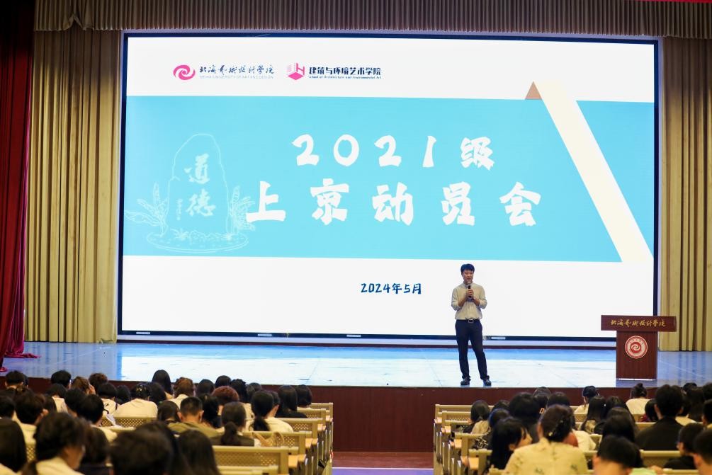 2024年5月30日,建筑与环境艺术学院于西校区大礼堂召开2021级上京动员会。学院院长王照伟、副院长蔡世伟、副书记岳莹、学工办主任曲玥、建环学院21级全体学生和辅导员出席此次大会。