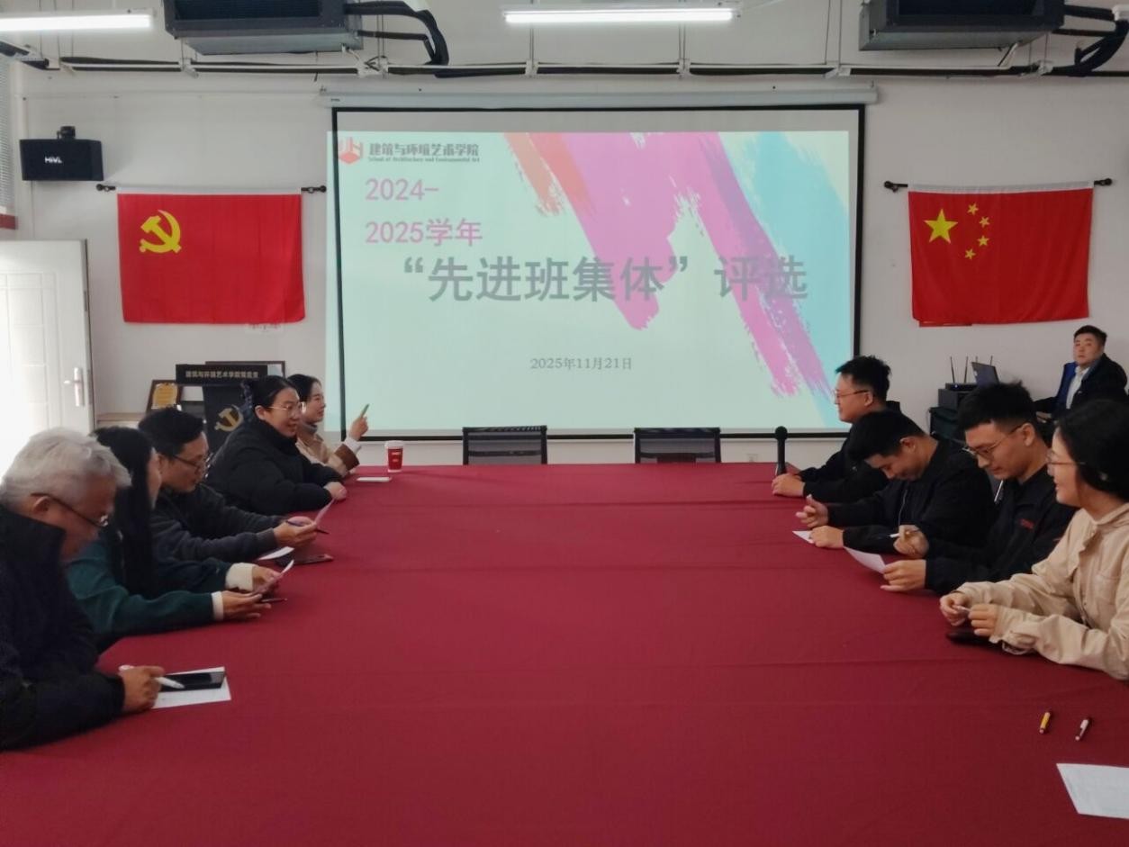 2025年11月21日11:30,建筑与环境艺术学院在公德楼507会议室举行本年度“三好学生”、“优秀学生干部”和“先进班集体”评优评先工作。此次活动邀请了建筑与环境艺术学院党总支书记庞定坤,学院副院长蔡世伟、张乐平,教研室主任张卫东,实验室主任贾金琨作为评委出席。会议由学院党总支副书记曲玥主持。