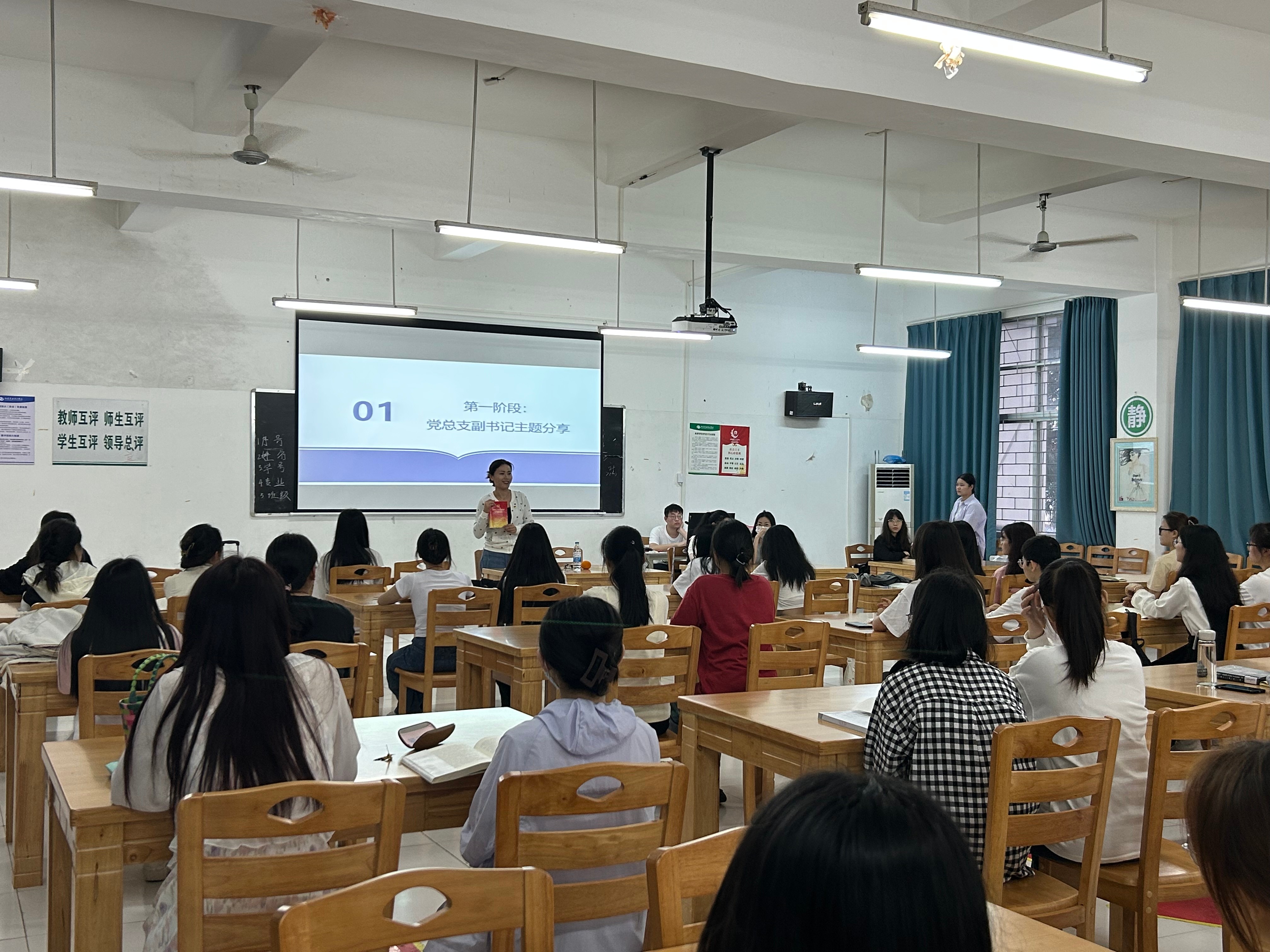 活动伊始,党总支副书记邓欢老师向在场党员师生倾情推荐了两本书,分别为:《百年大党面对面》和《党的二十大报告学习辅导百问》。其中,邓副书记以《百年大党面对面》趣味插图、幽默文字与党史知识相结合的特点,重点推荐了此书,激起了在场师生的阅读兴趣。