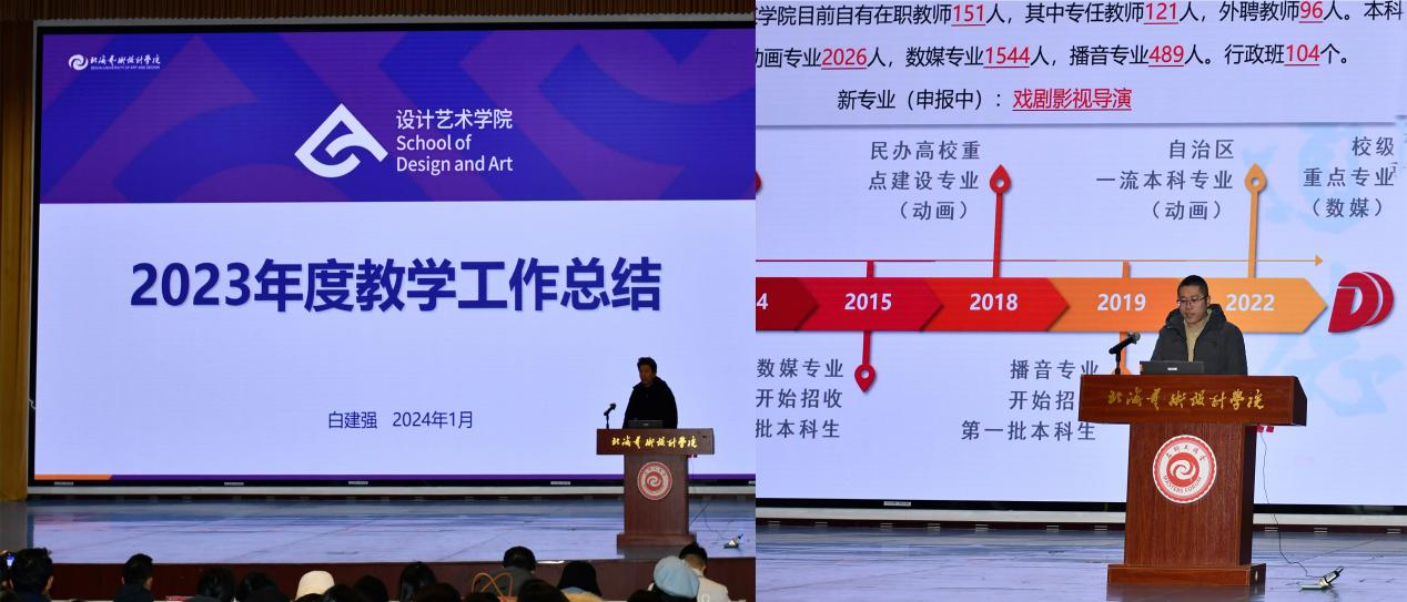 1月26日上午,学校召开了2023年度教学工作总结大会,回顾过去一年取得的成绩,以及在工作中发现的问题,并借此机会总结经验、累积教训,为2024年教育教学工作打好基础。学校常务副校长胡胜、党委副书记彭仁、副校长邱杰出席此次会议,全体任课教师、教学管理人员、教务处及教学质量监控与评估中心全体工作人员参加了会议。会议由校长助理、设计艺术学院院长李林平主持。